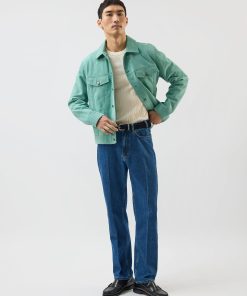 Percival Men’s Suede Western Leather Jacket | Mint Green