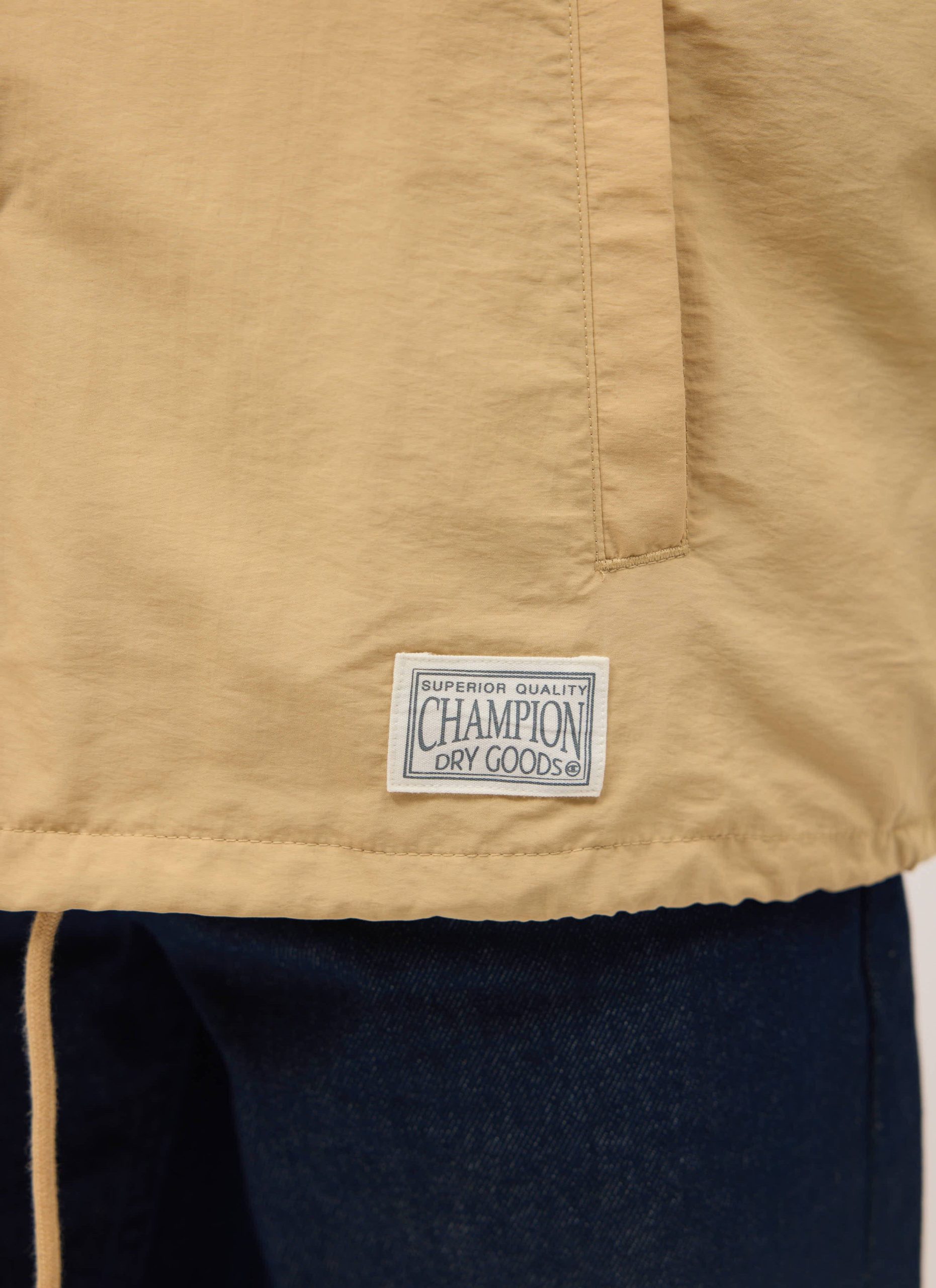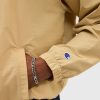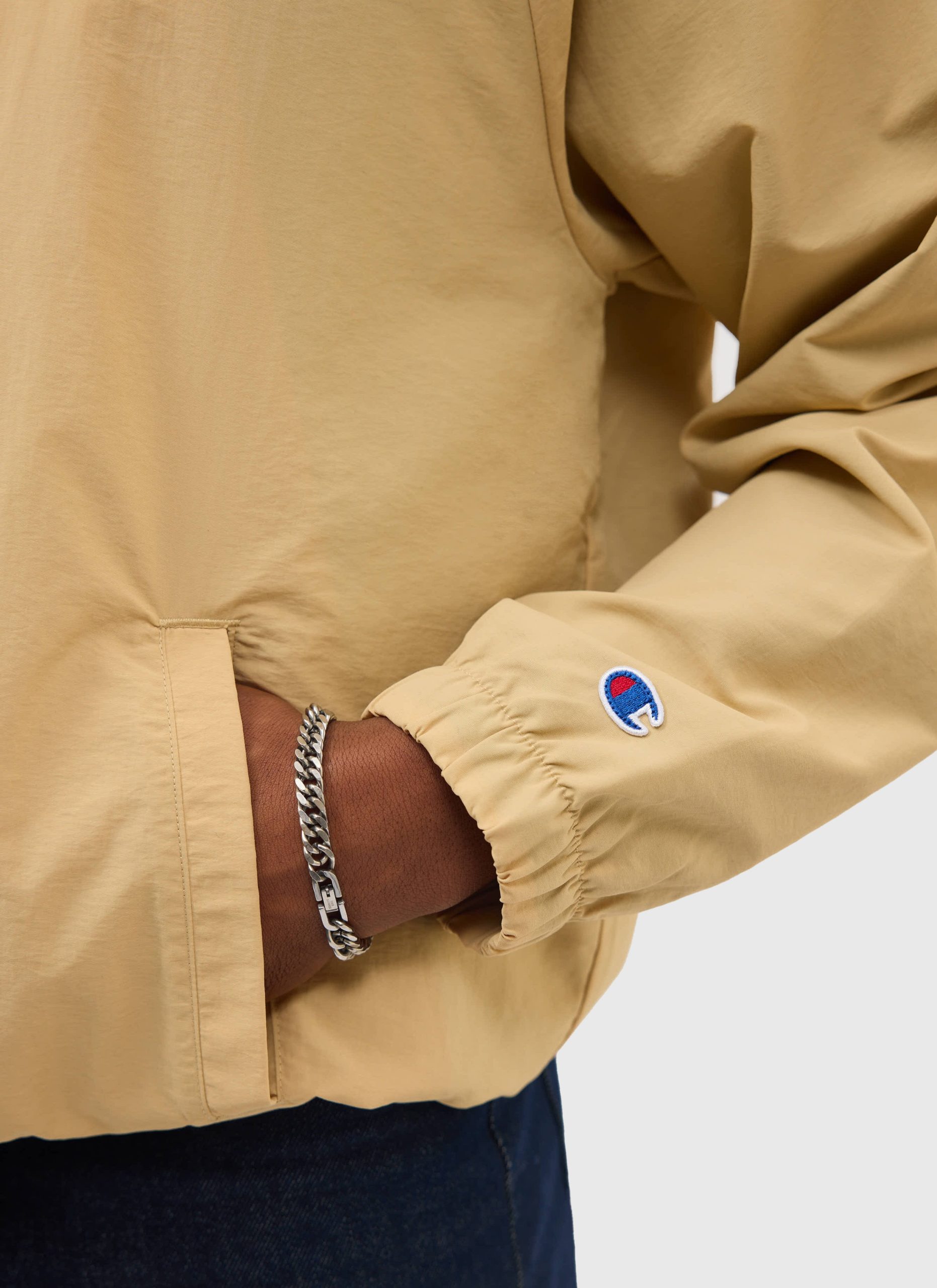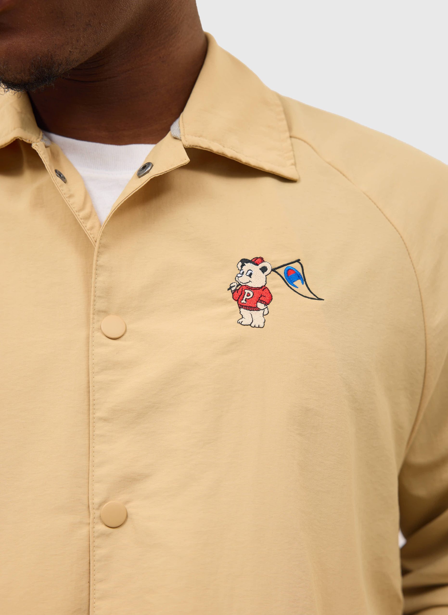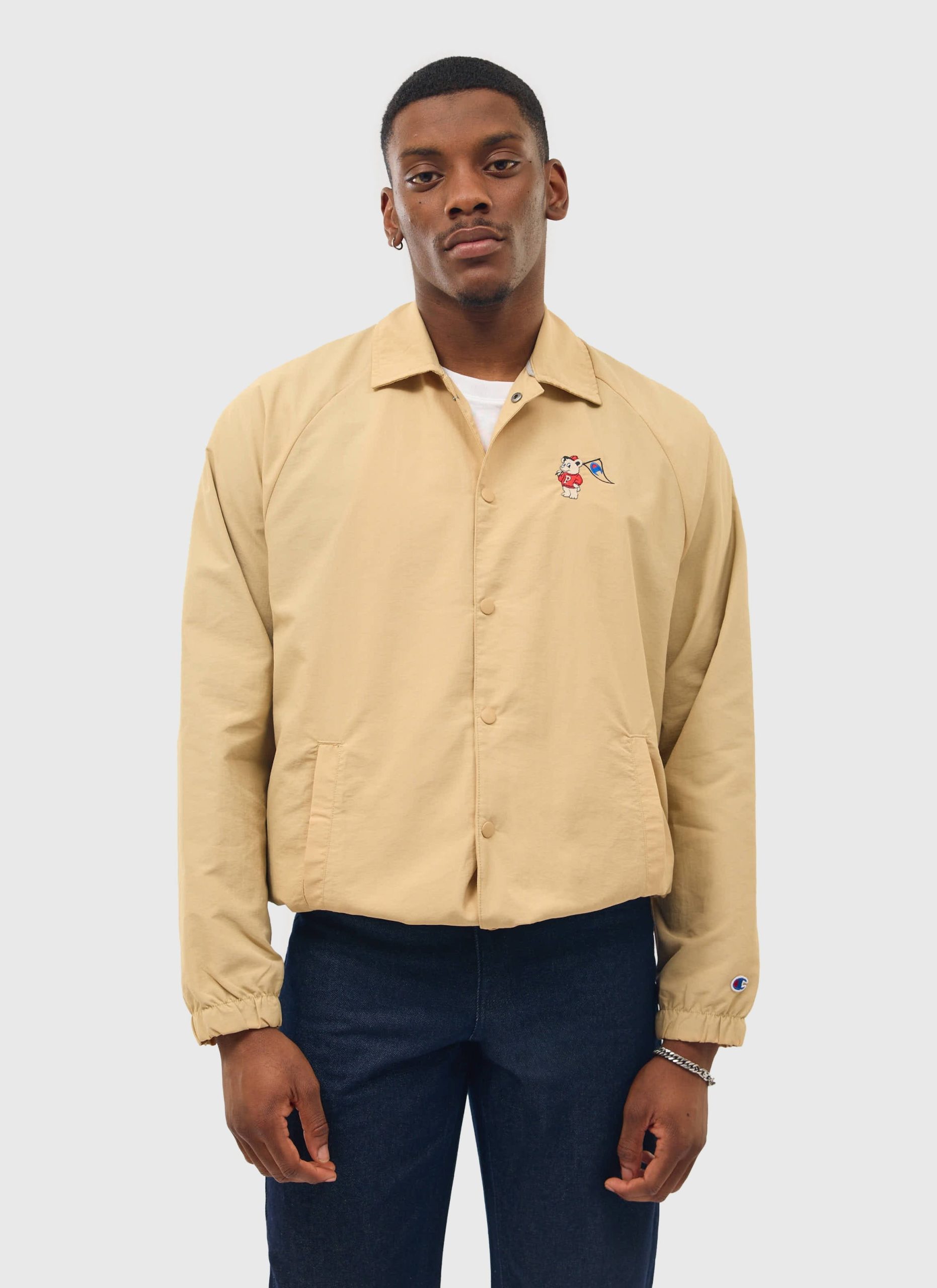 - Features: Men’s Champion Jacket in Camel. This versatile Coach Jacket is made from Champion quality and embroidered in London with a hand drawn Percival illustration ‘Bear Mascot’ and iconic C logo patch on the sleeve. Featuring a regular fit, point collar and inner lining for added warmth. This jacket is perfect for all occasions from festivals to weekend trips.