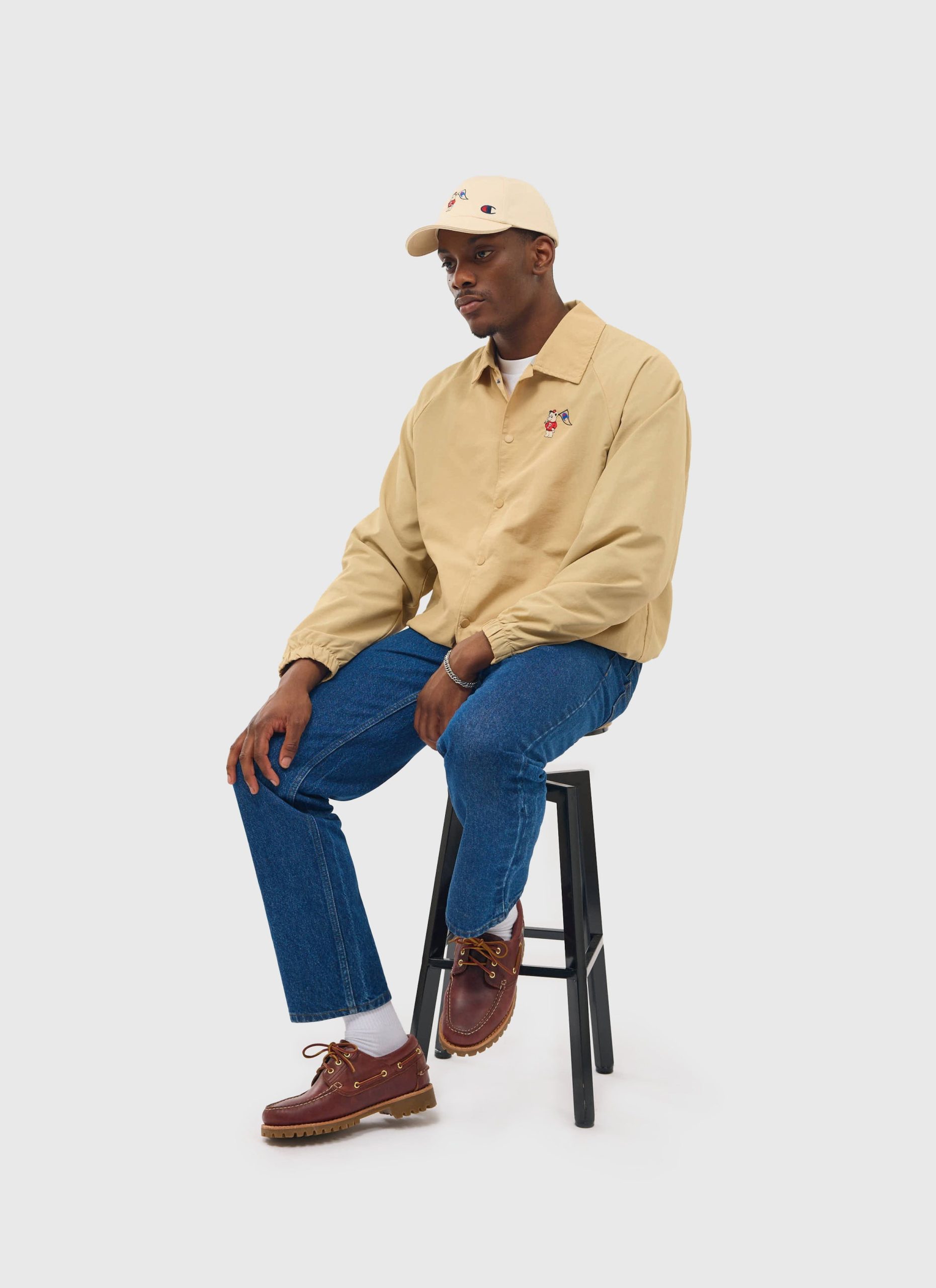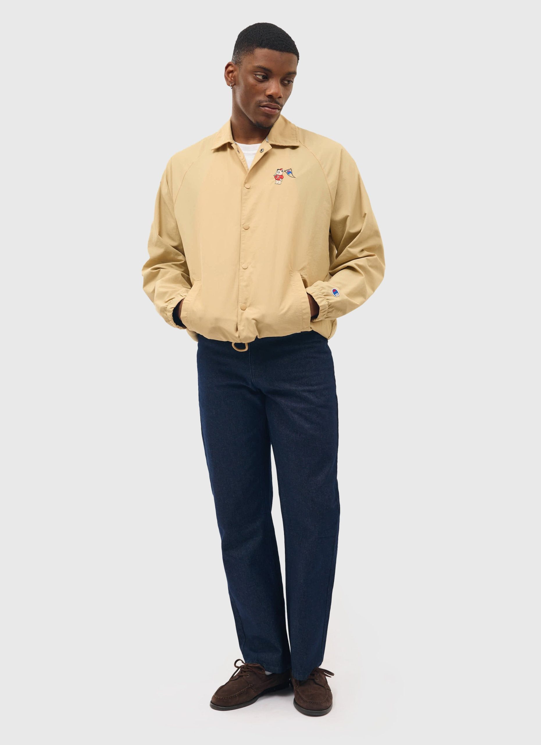 Our latest collaboration draws inspiration from the rich history of Champion; the collegiate heritage, Ivy League style. We’re honouring the classic track uniform with reverse weave sweats, tees, and this Coach jacket. Each piece is embroidered in London, made in limited quantities. Perfect for pitch side all the way to post match pints.
