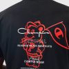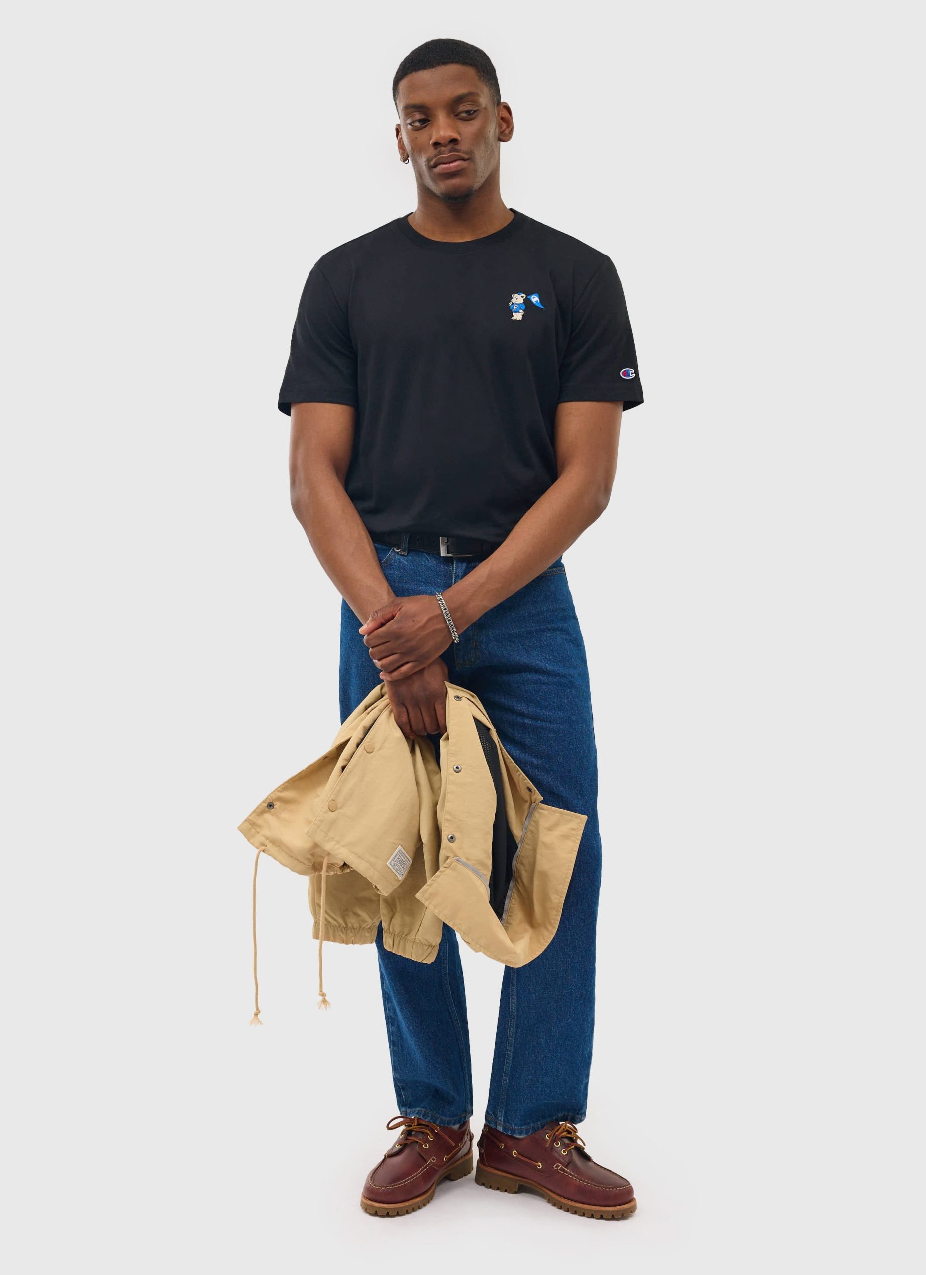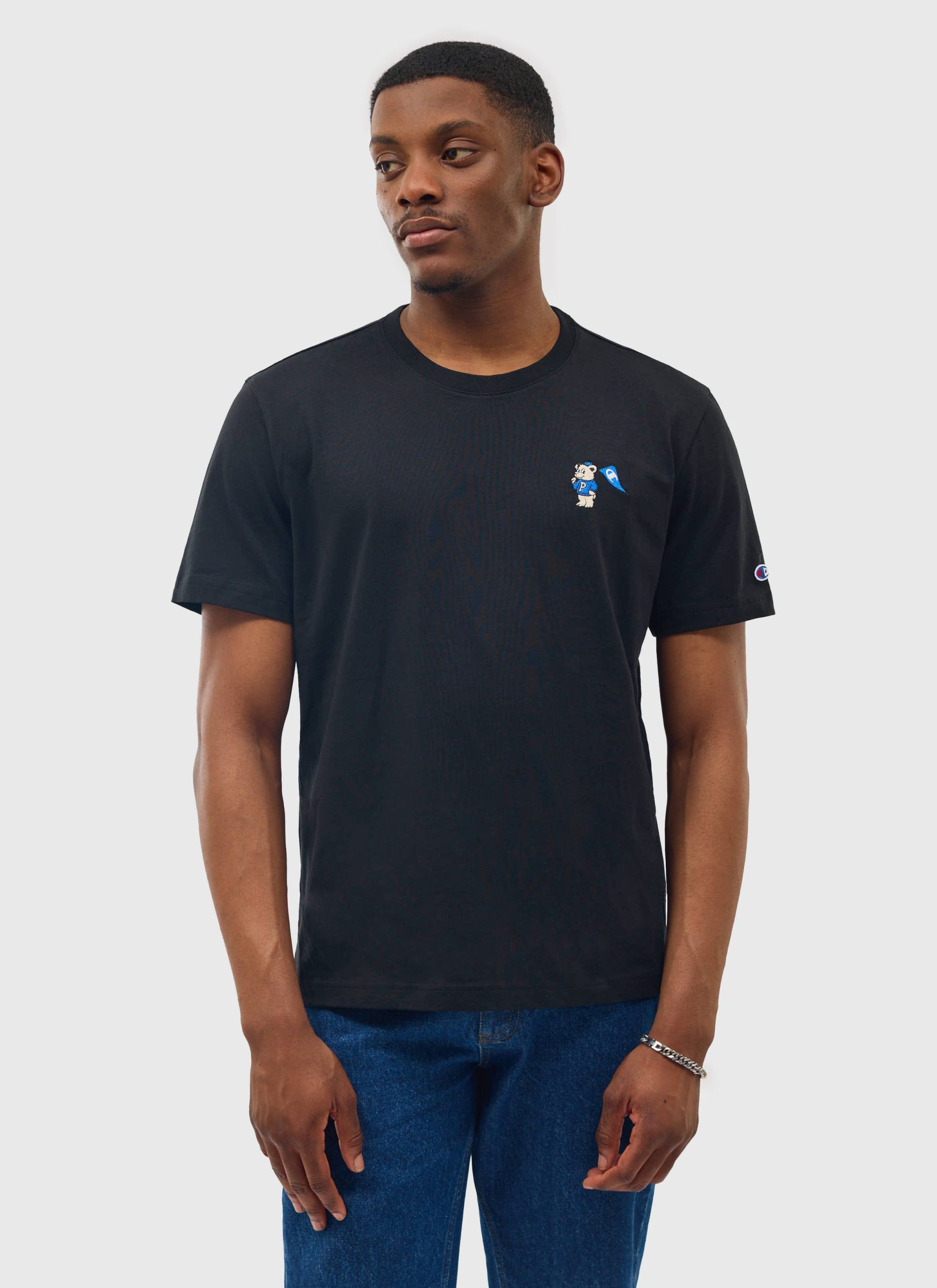 - Features: Men’s Regular Fit Champion T Shirt in Black. This heavyweight tee is embroidered in London with a hand drawn Percival illustration ‘Bear Mascot’ and iconic C logo patch on the sleeve. The short sleeve t shirt is a regular fit and is a wardrobe staple, perfect for layering all year round.