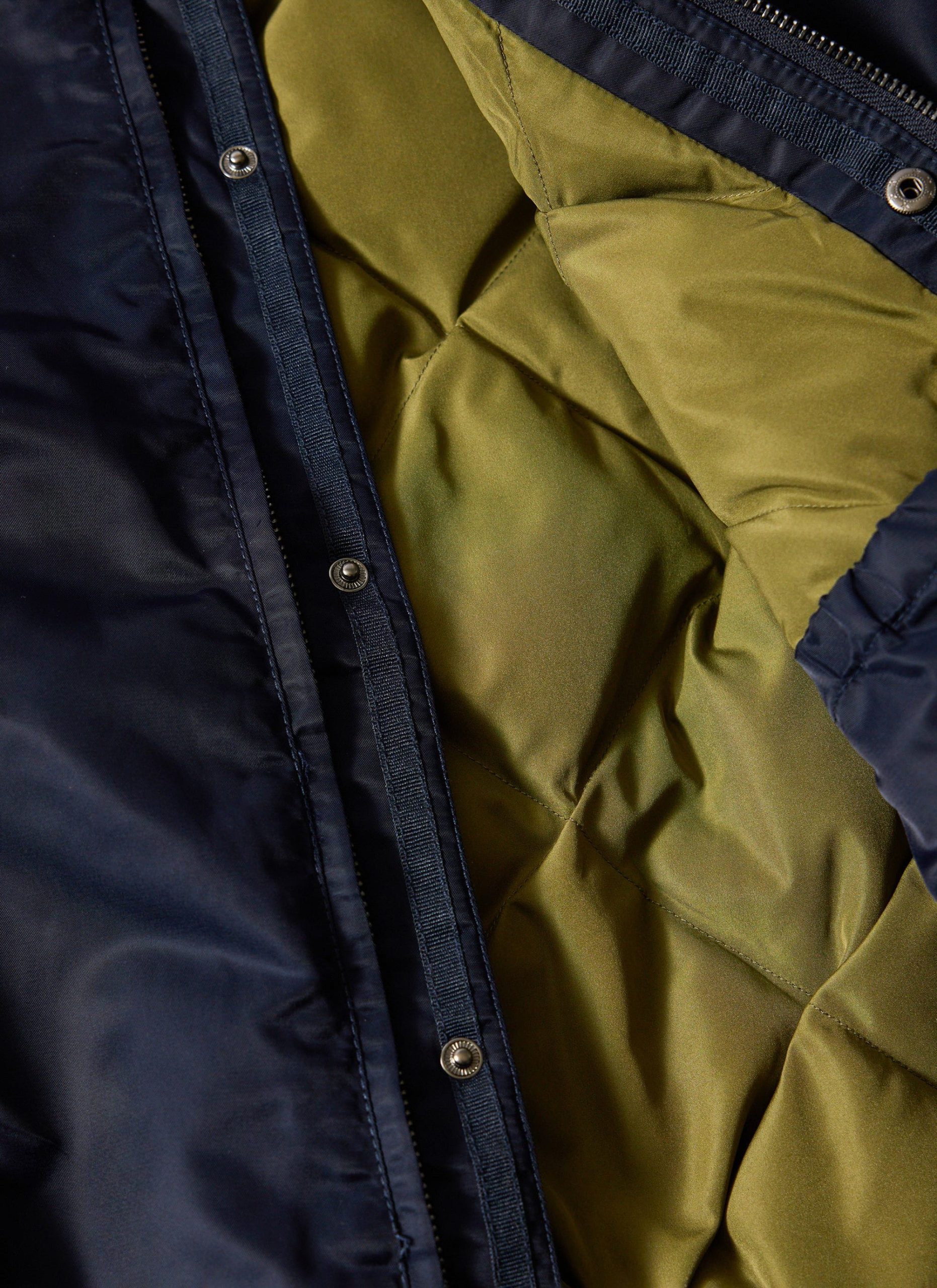 - Features: Constructed from a water resistant premium nylon outer, with a recycled filling and lining. Quilted on the inside with plenty of pockets. Took us two years to get this jacket just right.