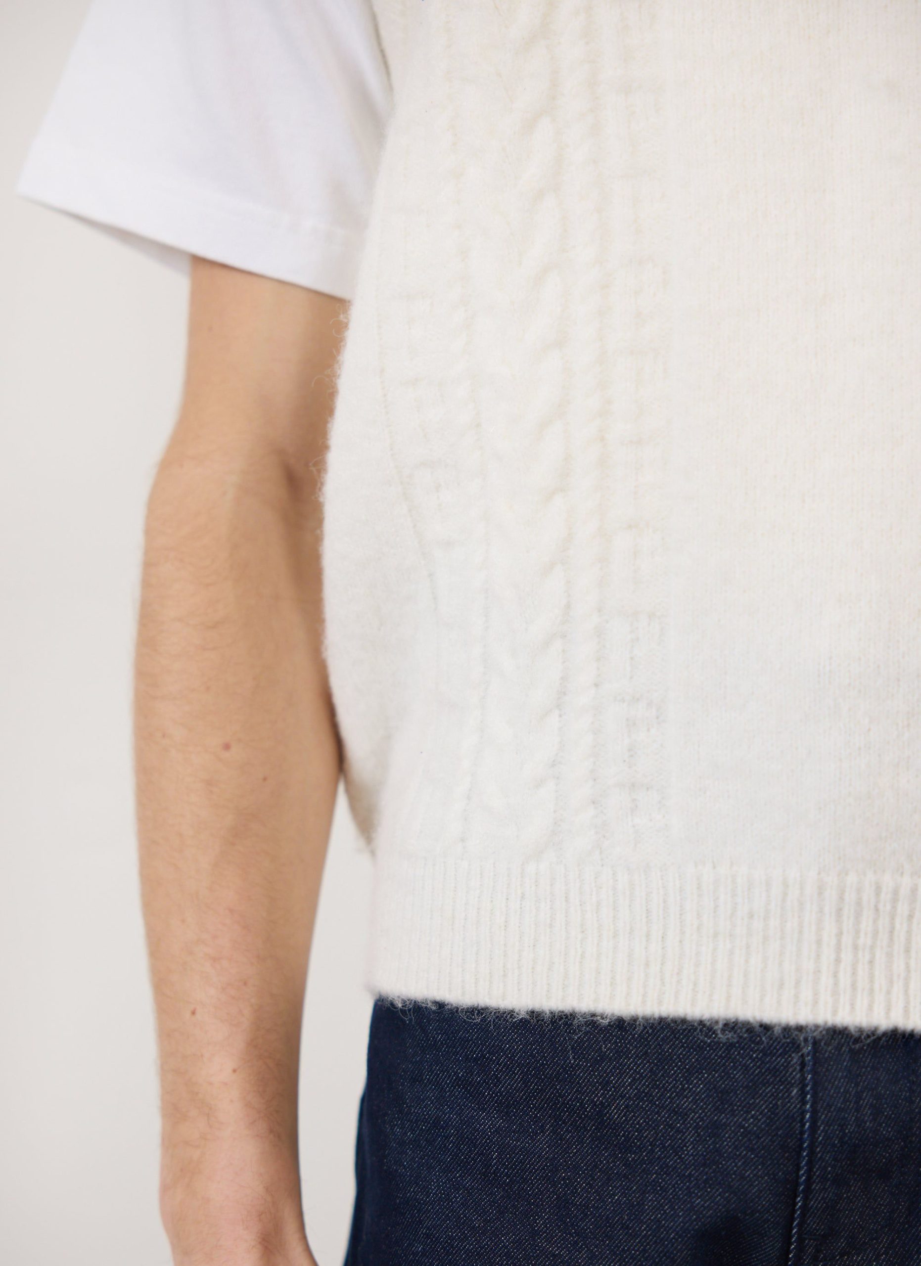 - Features: Men’s Cable Knit Sweater Vest, crafted from an Alpaca Wool blend for comfort and durability. Designed with a thick ribbed V Neck, making the piece ideal for on top of a t shirt or layering with a lightweight jacket. The Cream Vest top is a must have for this spring as it is perfect for transitional seasons.