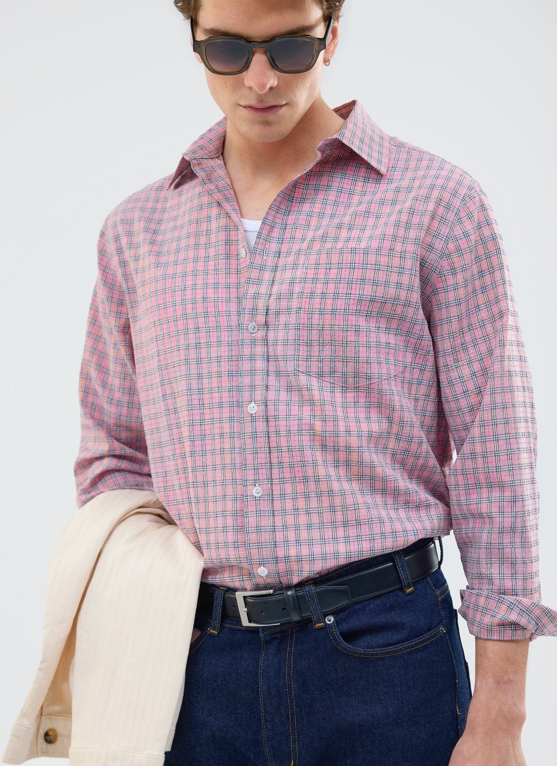 - Features: Men’s long sleeve shirt in pink, designed with a relaxed fit and crafted from a high-quality cotton blend for a durable yet lightweight feel. Featuring easily foldable cuffs, a chest pocket, custom Percival buttons, and a traditional point collar, this checkered smart casual shirt offers a sophisticated edge. Ideal for transitional months, it can be worn on its own or layered over a shirt or vest for versatile styling.