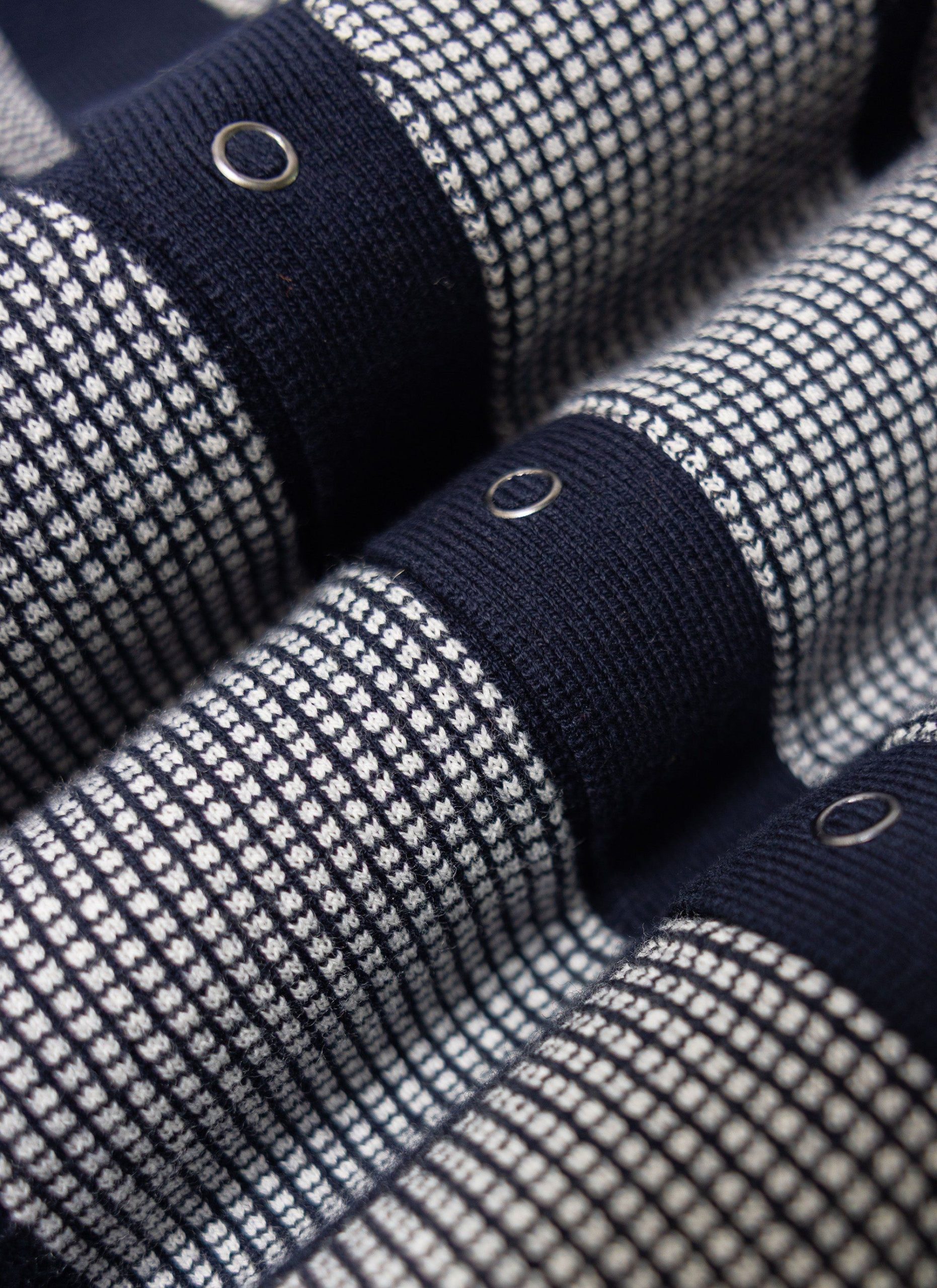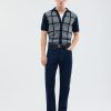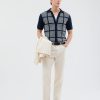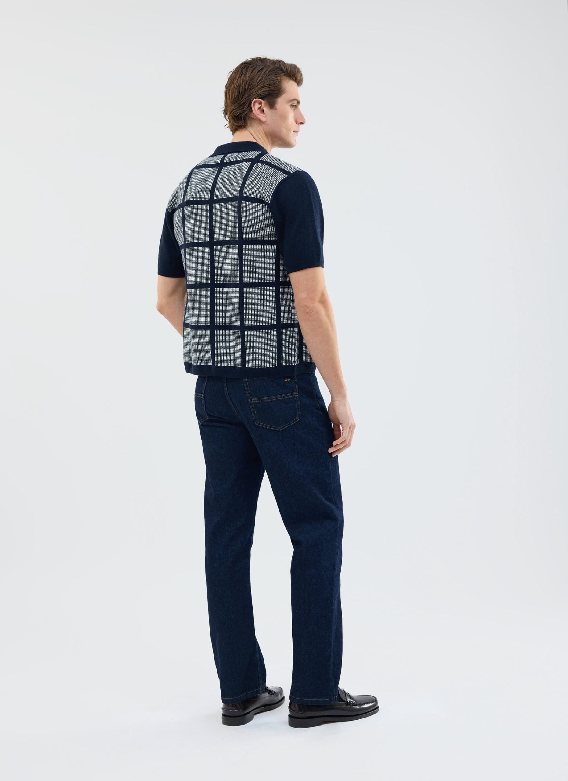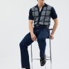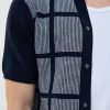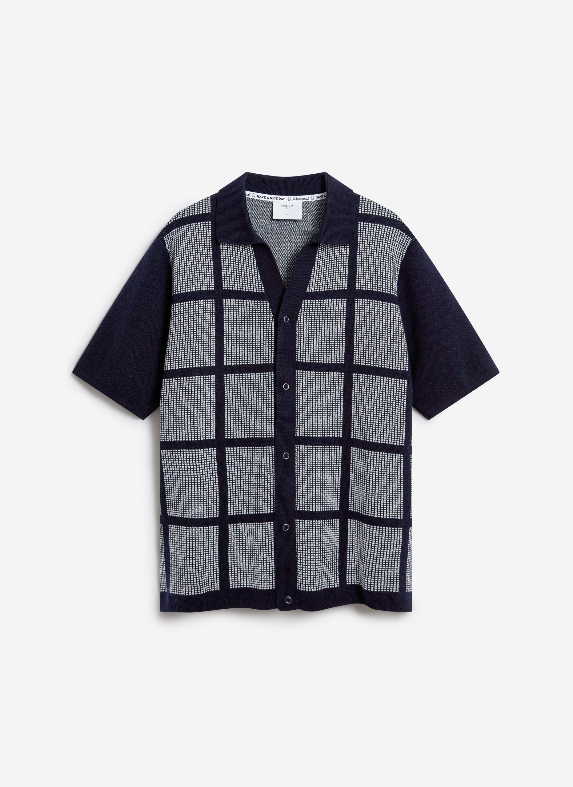 - Features: Men’s open collar knitted shirt, crafted from a breathable cotton and merino blend for all-day comfort. This navy bowling shirt features a retro inspired square design and stylish snap buttons, allowing it to be worn open or closed. It pairs effortlessly with Percival denim or suiting options, making it a smart-casual staple that’s perfect for summer.