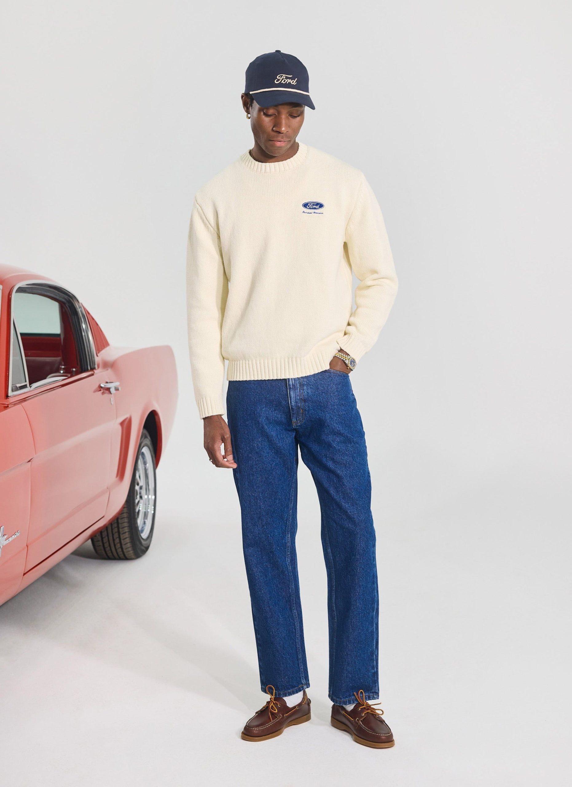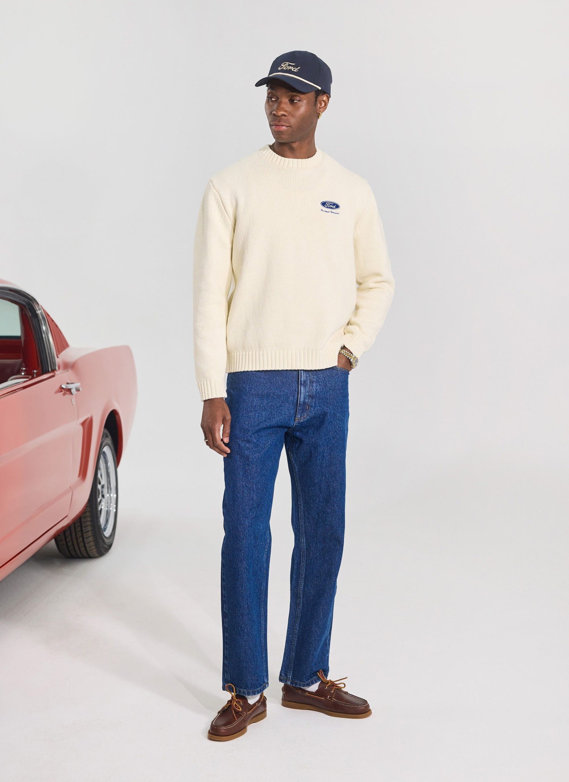 - Features: Men’s ecru cream sweatshirt made from a 100% organic cotton. Featuring custom Ford embroidery on the chest, this knitted sweatshirt is ideal for adding a stylish yet relaxed touch to every man’s wardrobe.