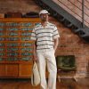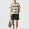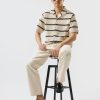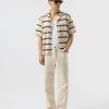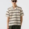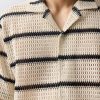 - Features: Men’s cream cuban collar shirt with black stripes, made to elevate every occasion. This crochet knit shirt offers a classic fit, tapered at the waist, baggy sleeves and sitting just right on the shoulders. With its refined striped black and cream pattern, its effortlessly versatile, wear it open or buttoned up and styled with Percival shorts, denim, or tailored trousers. A timeless staple every man should have in his wardrobe.