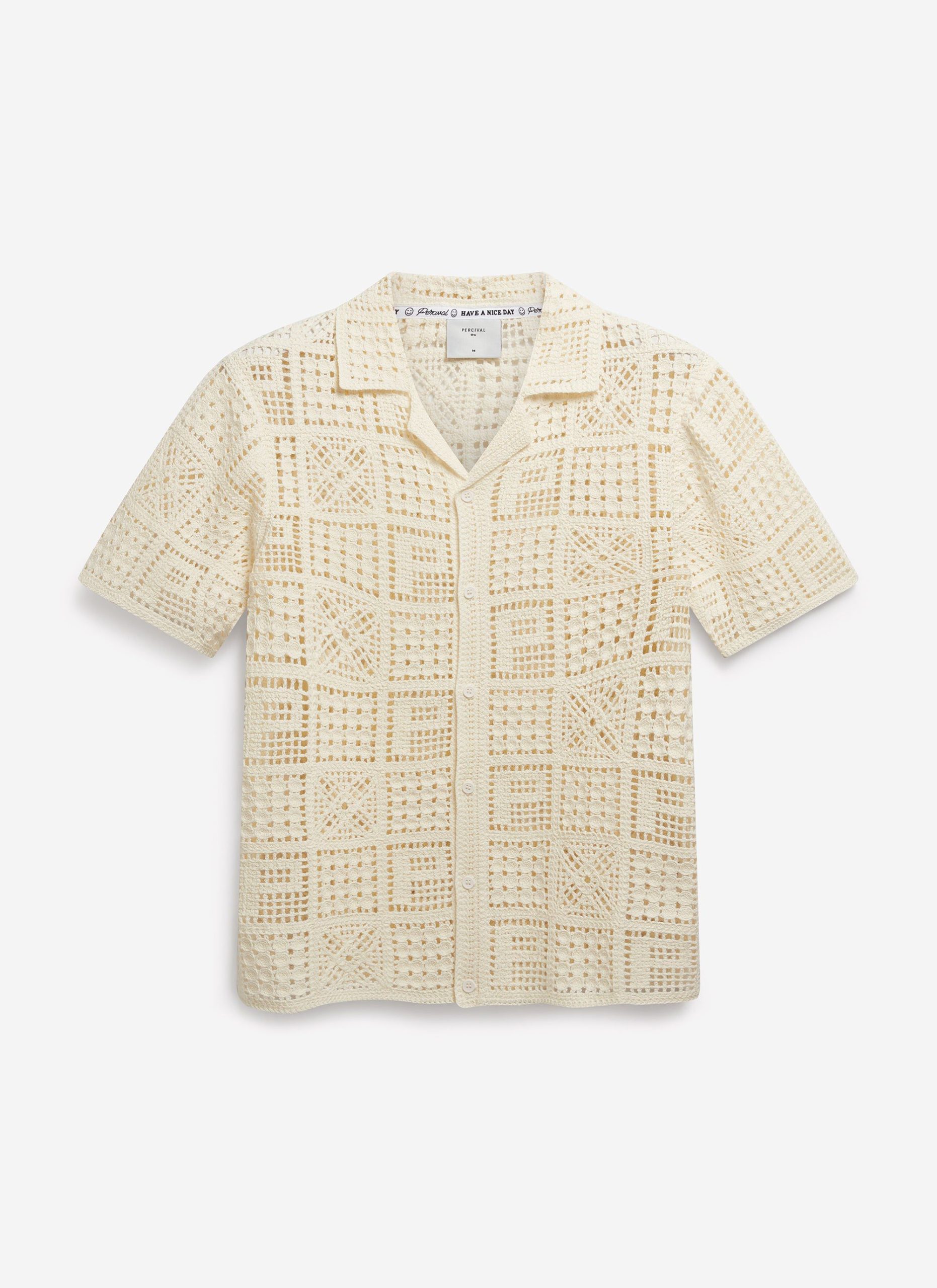 - Features: Men’s cotton crochet knit shirt, custom Percival design crochet, made in limited quantities.