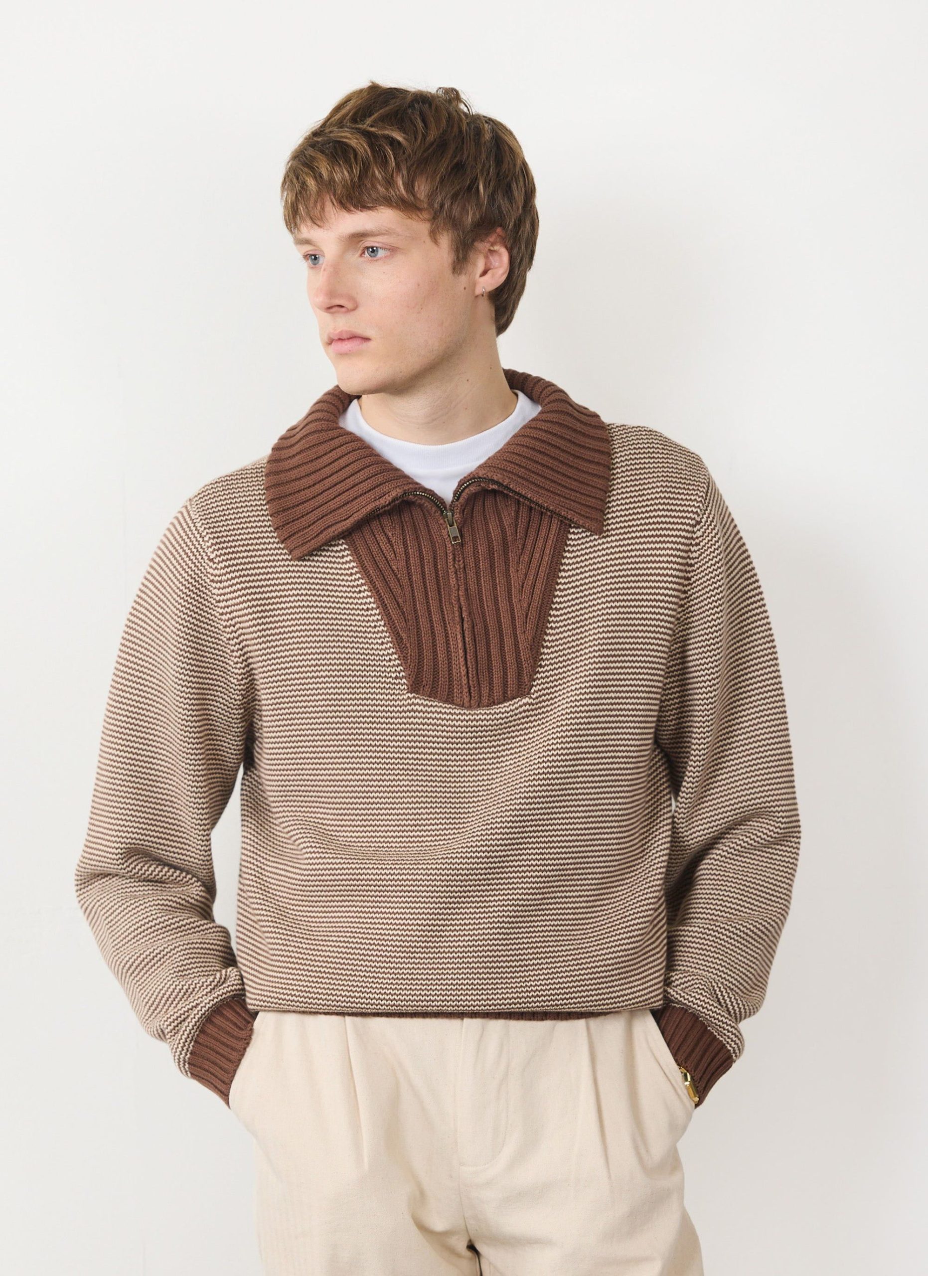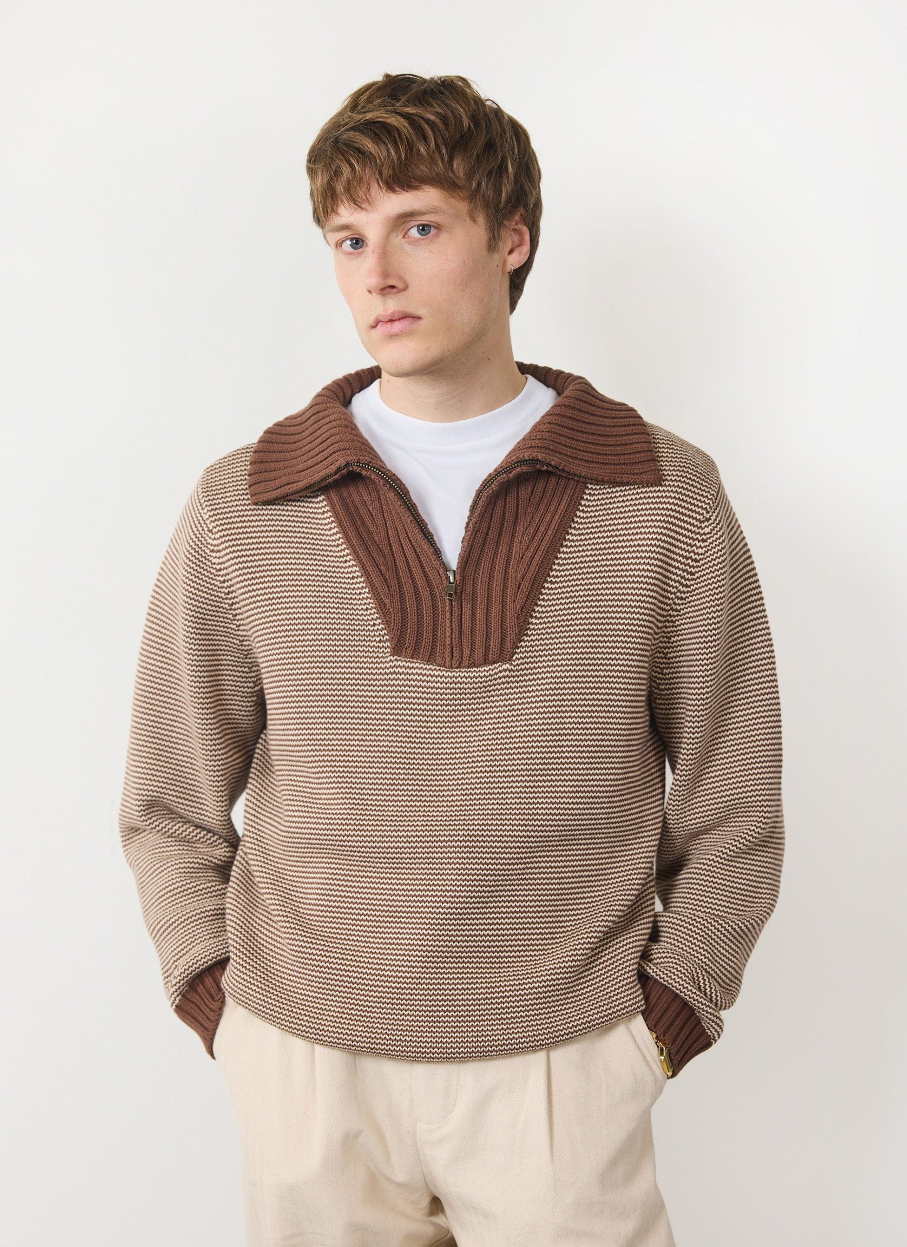 Percival Men’s Fisherman Quarter Zip Sweater | Rust