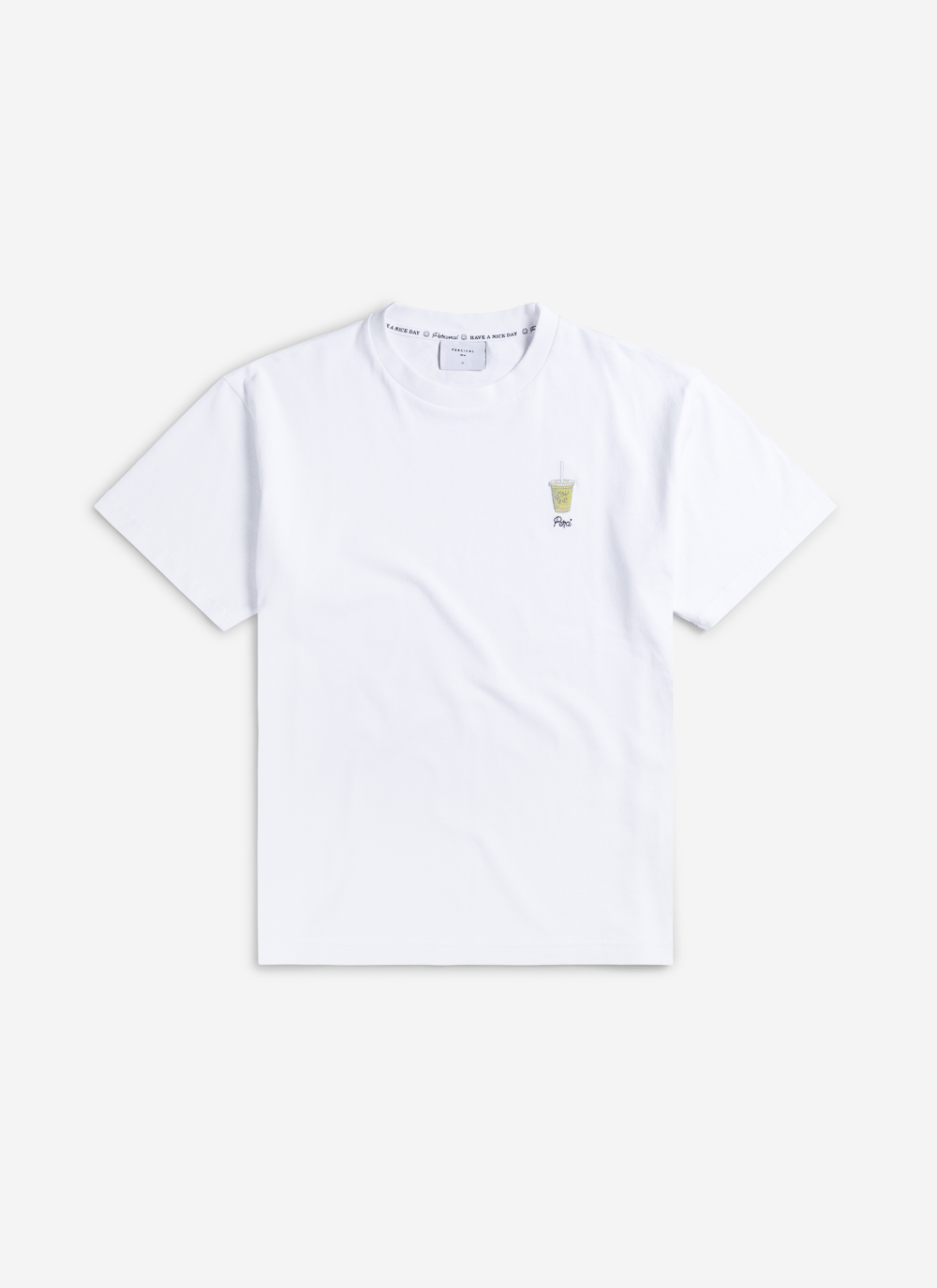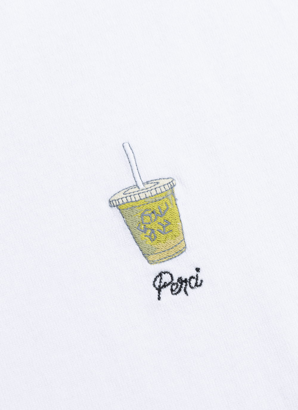 A white t-shirt with a tiny embroidered matcha latte—because your 2025 caffeine addiction deserves its own merch.