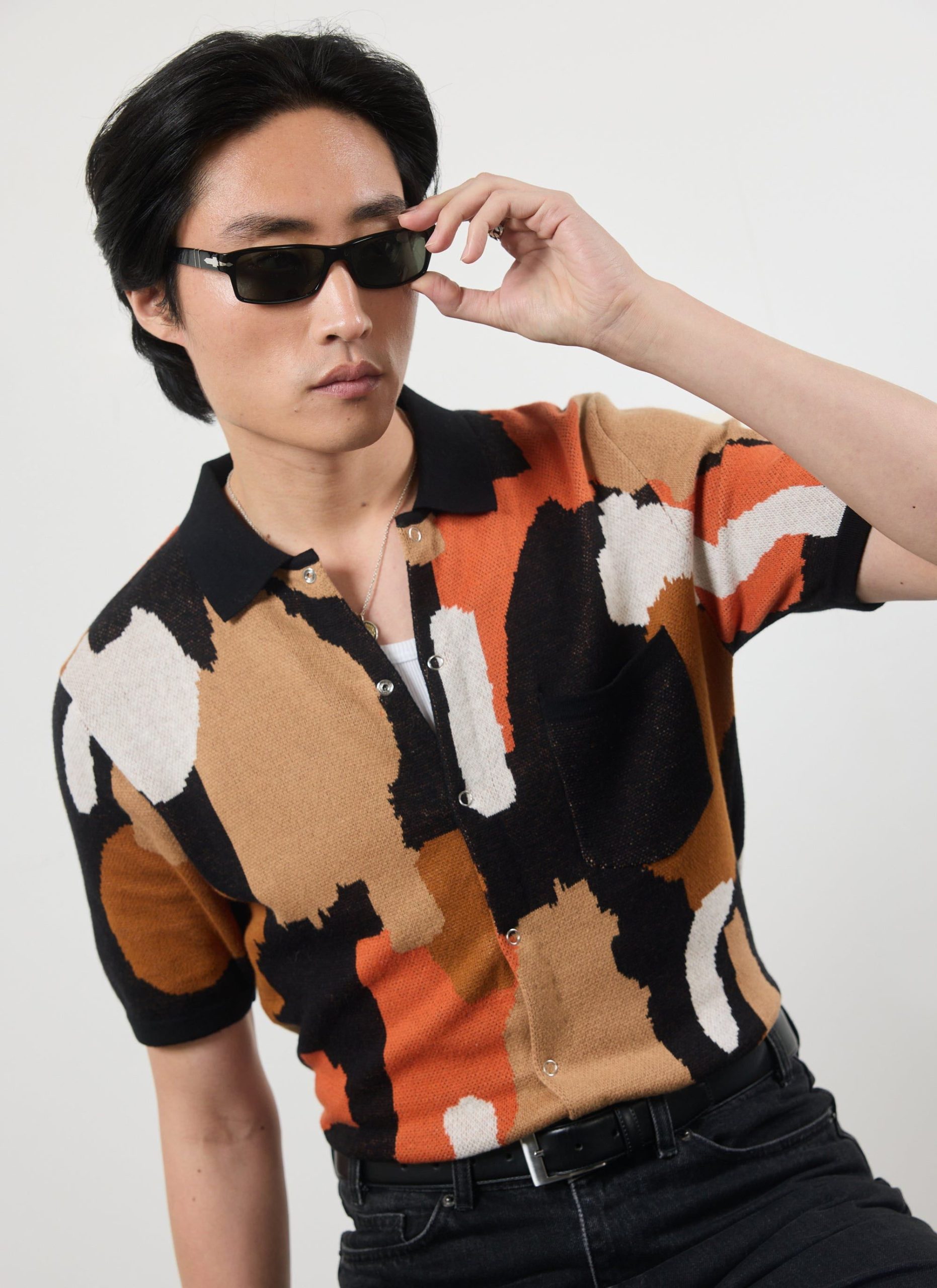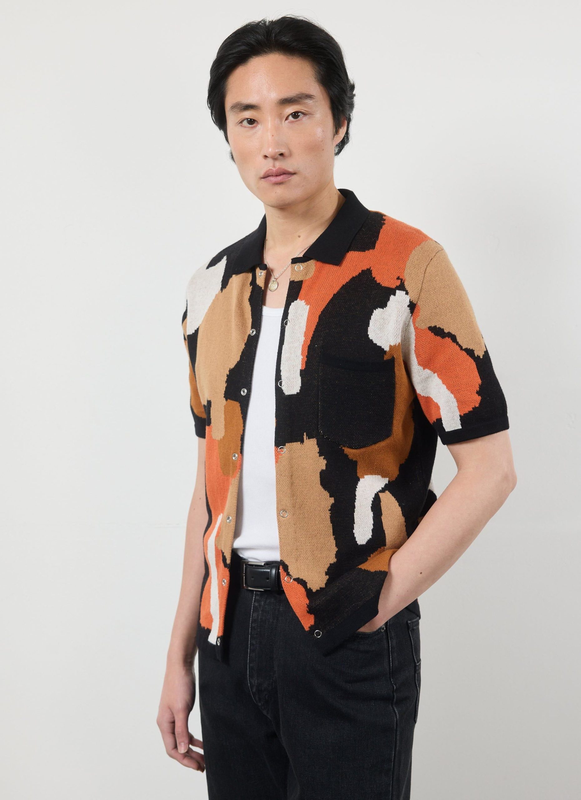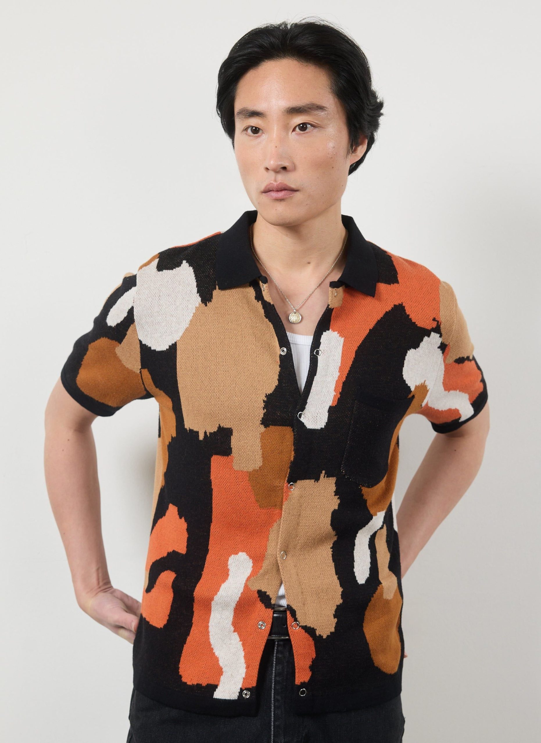 - Features: Men’s button down shirt made from knitted cotton. Finished with short sleeves, popper fastening and a front chest pocket, this jacquard knit shirt is ideal for the summer.