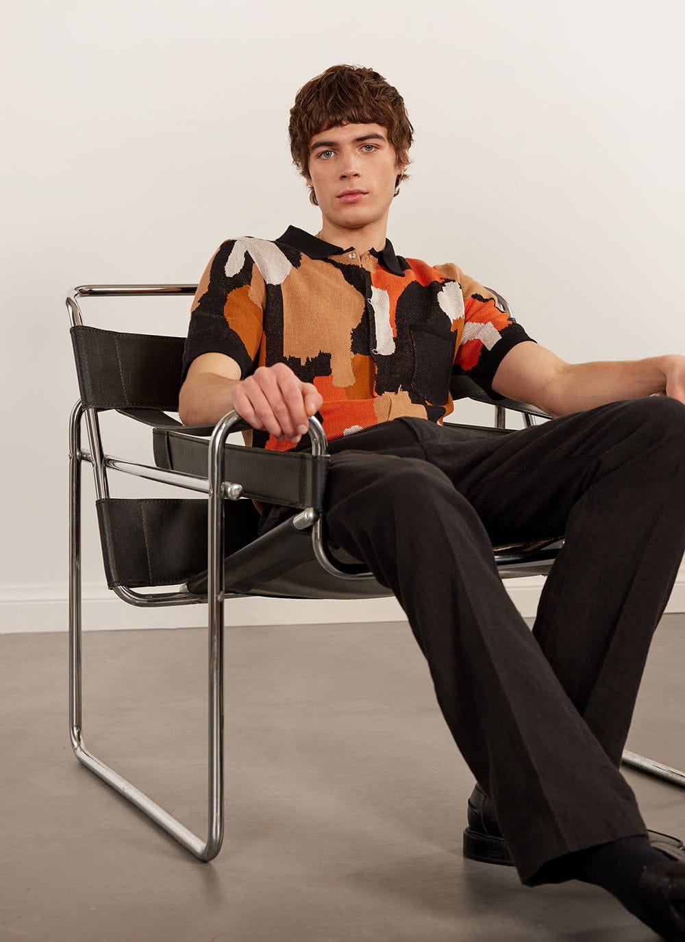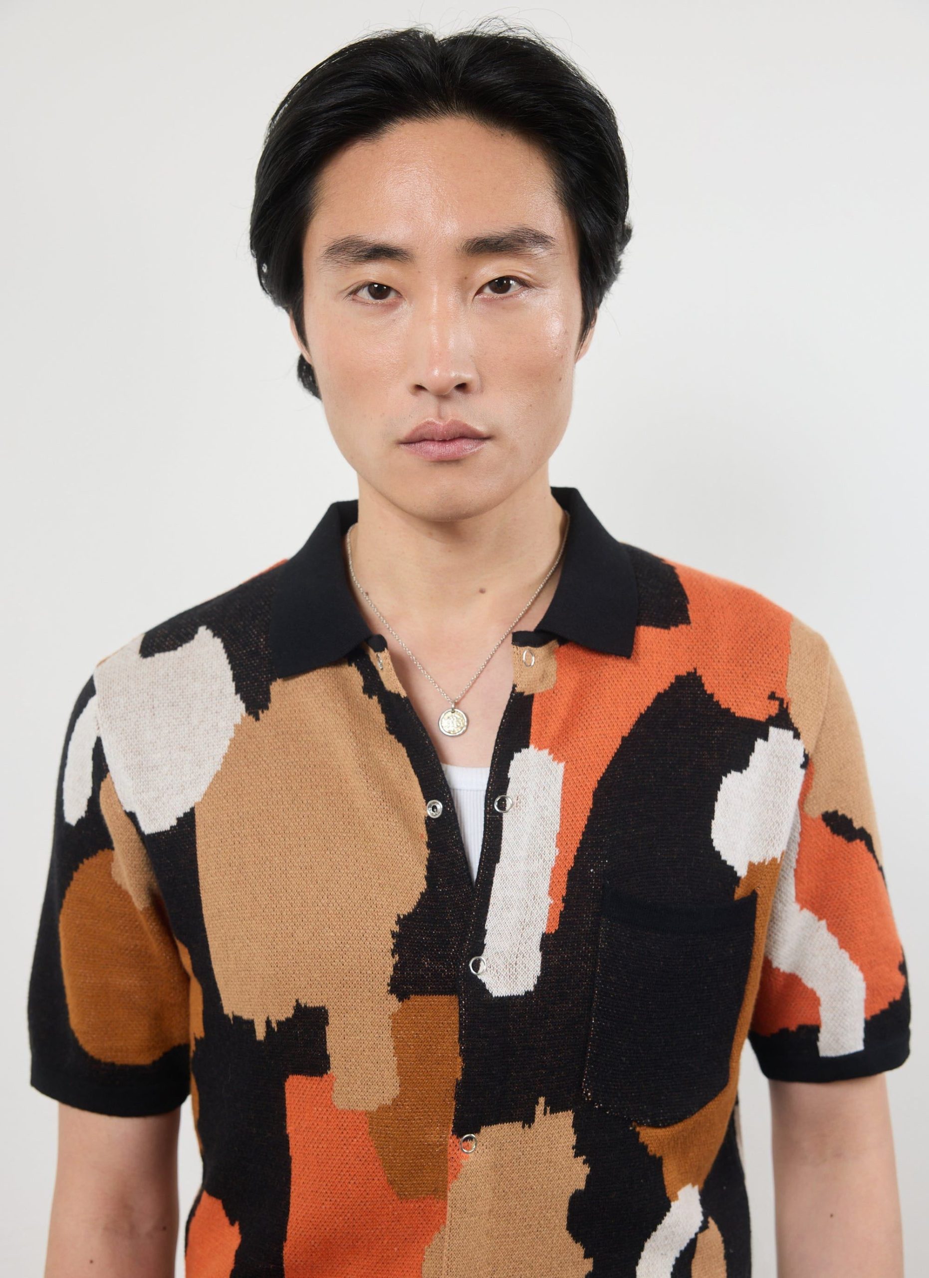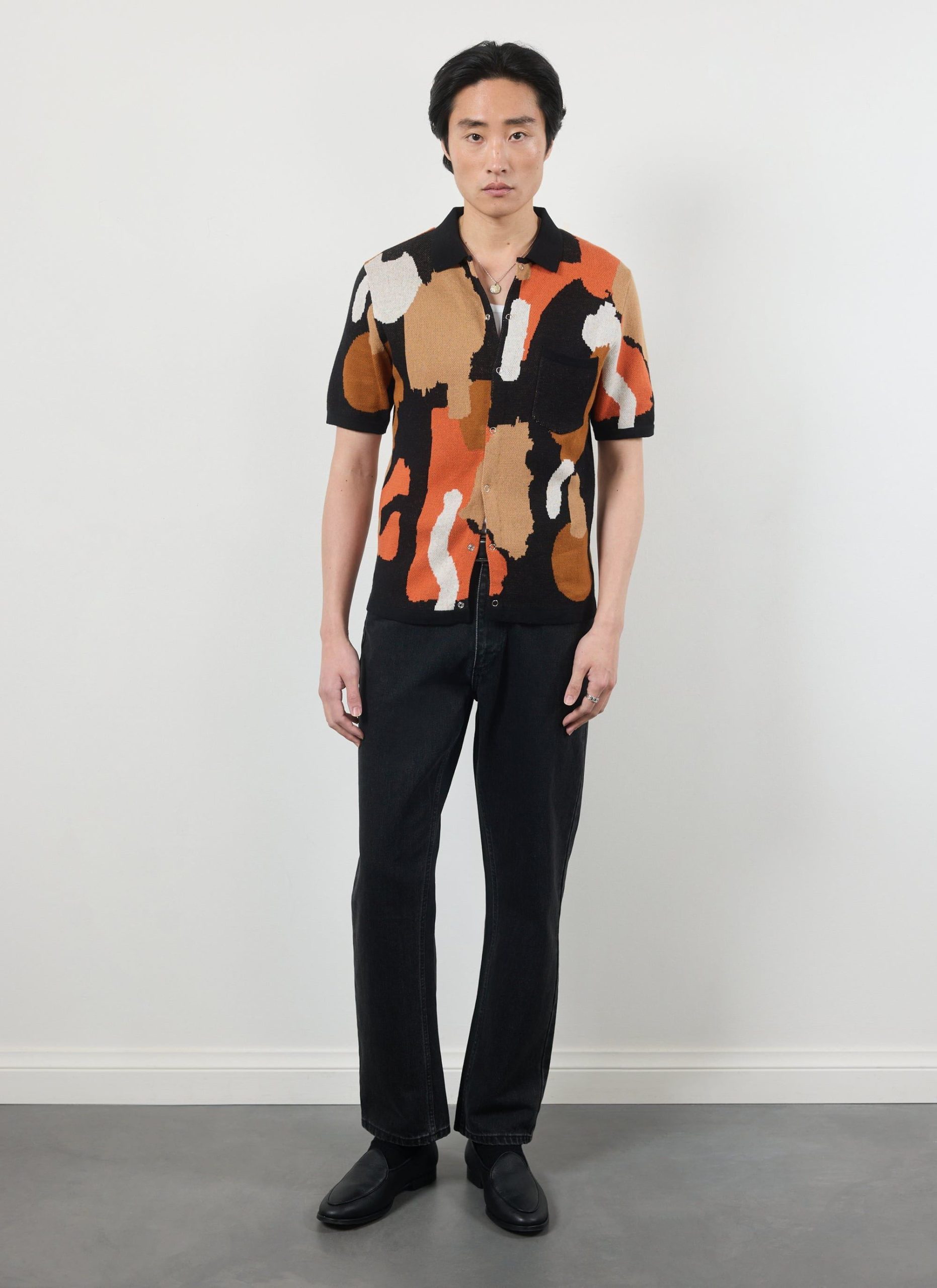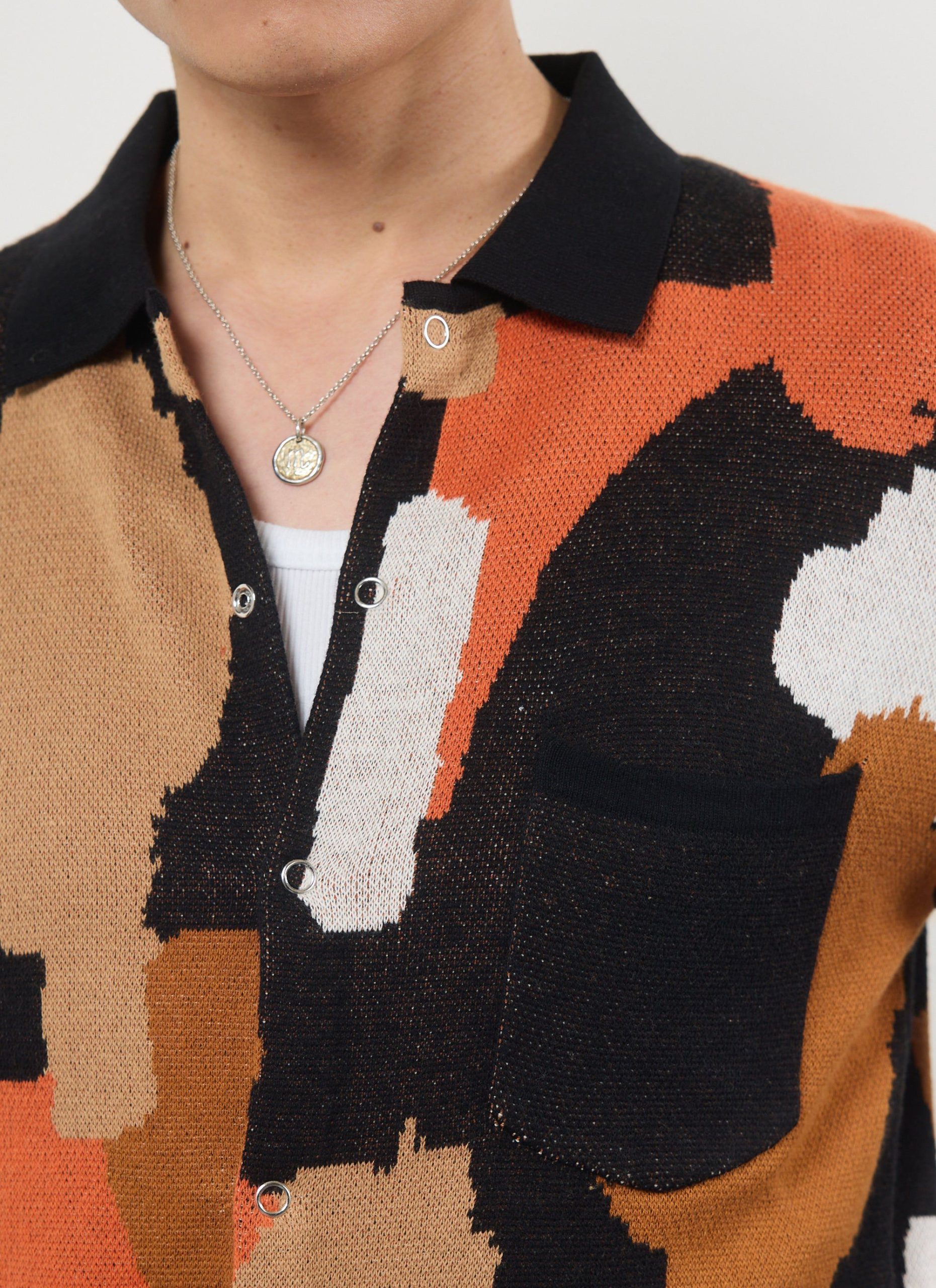 - Features: Men’s button down shirt made from knitted cotton. Finished with short sleeves, popper fastening and a front chest pocket, this jacquard knit shirt is ideal for the summer.