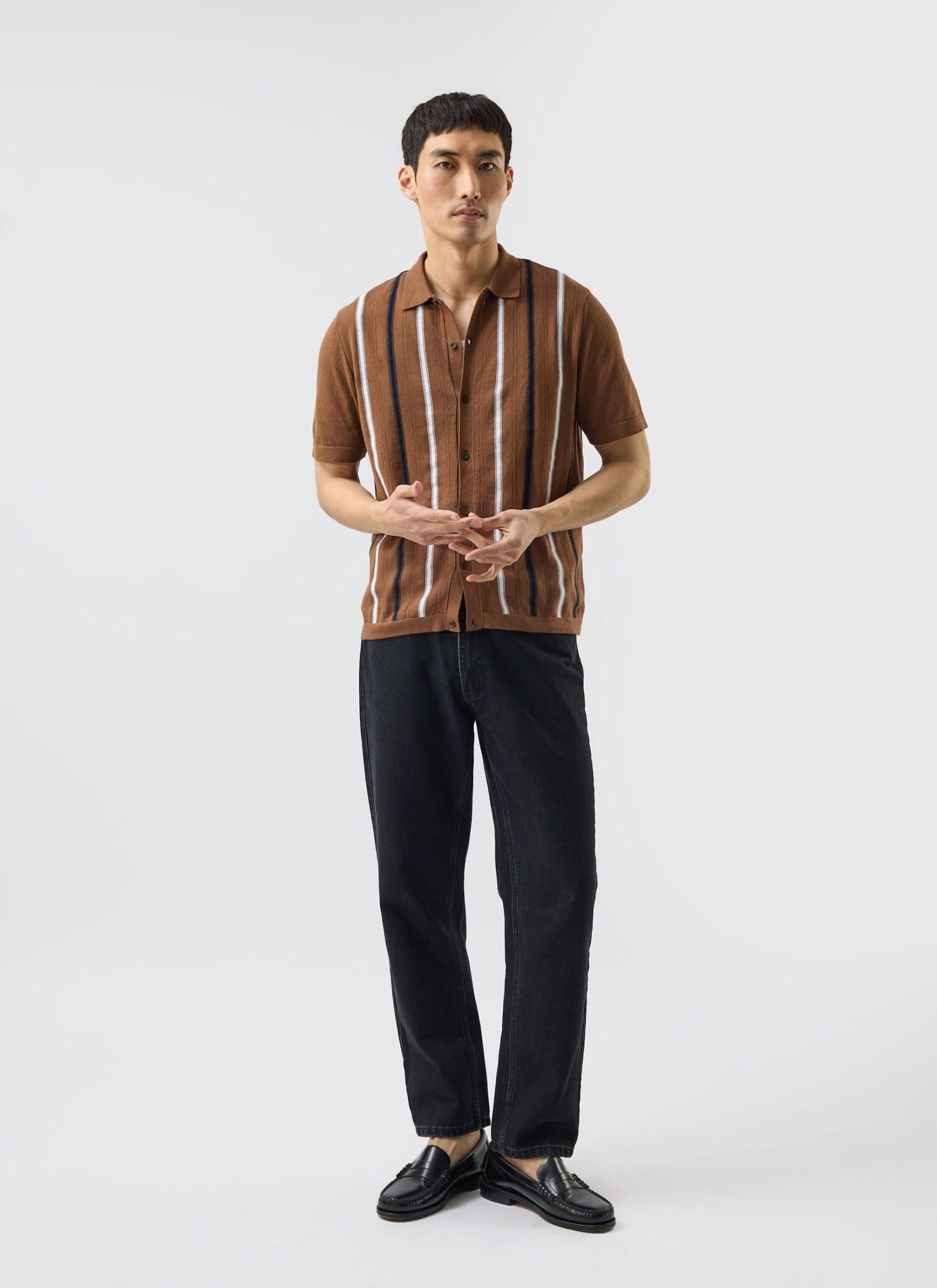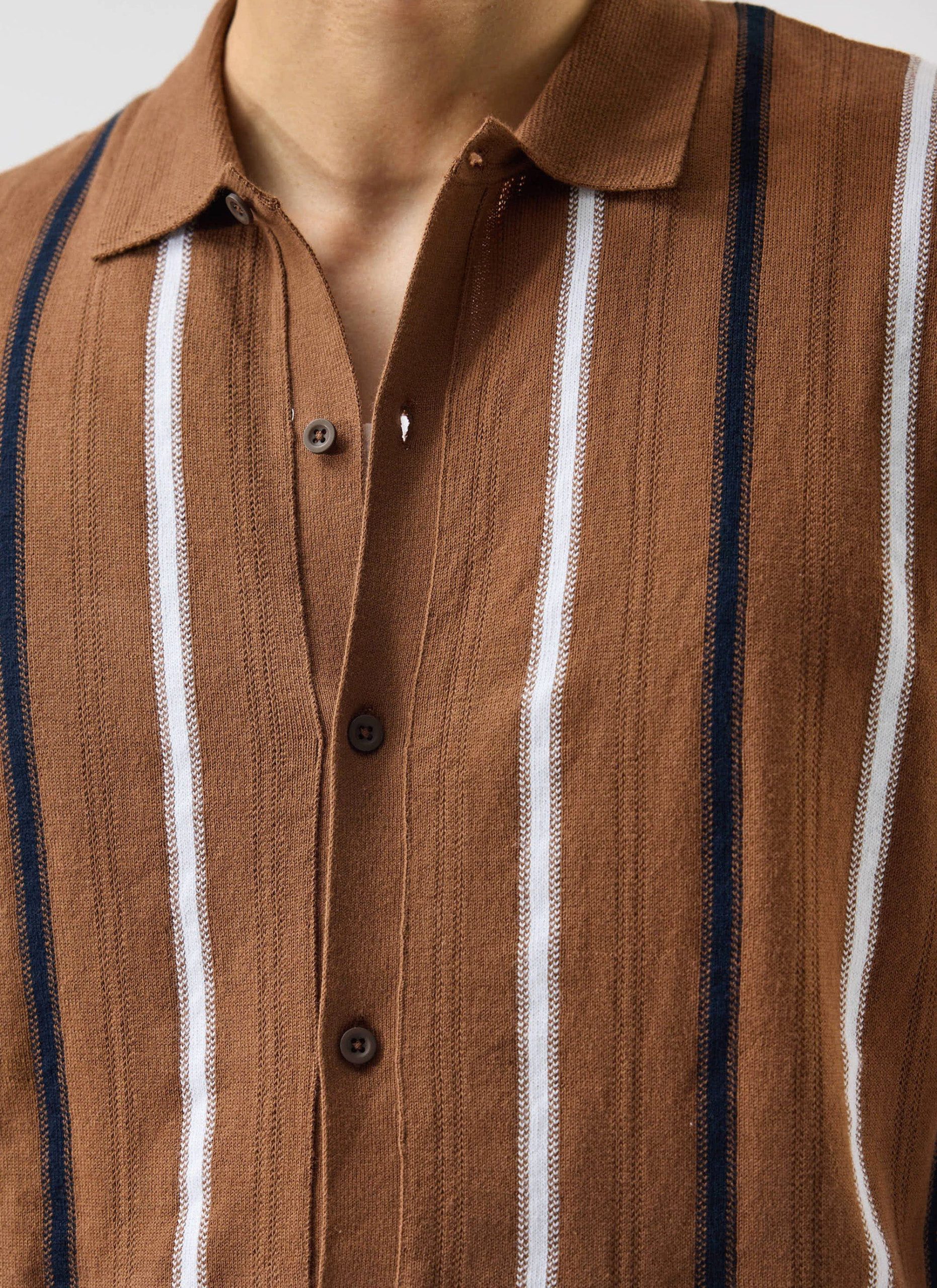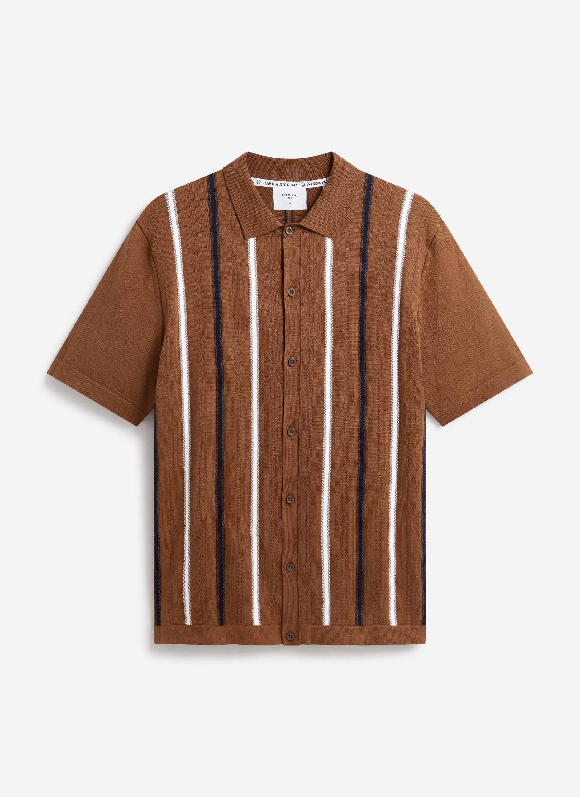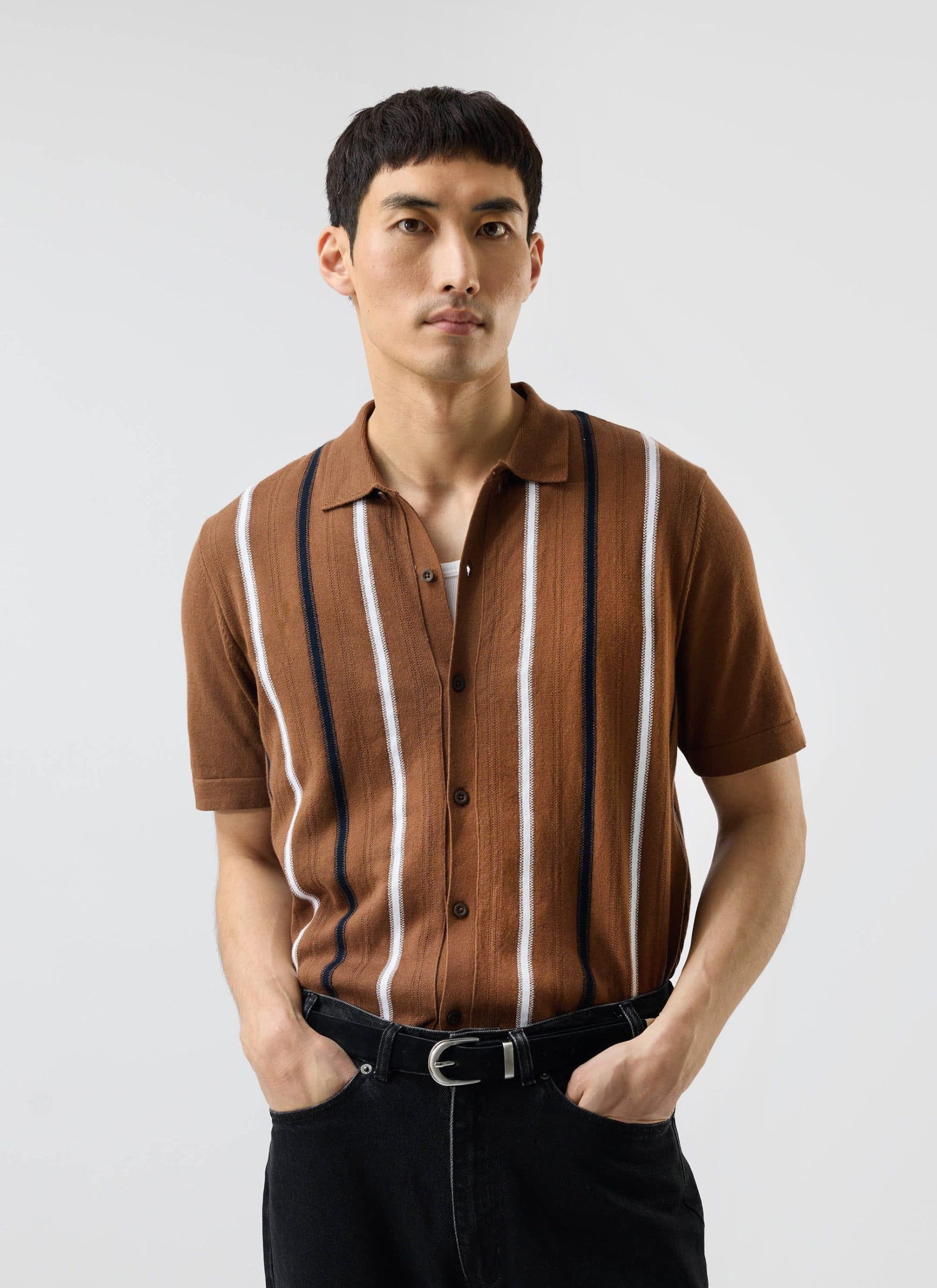 Percival Men’s Knitted Cotton Stripe Short Sleeve Shirt | Rust