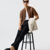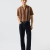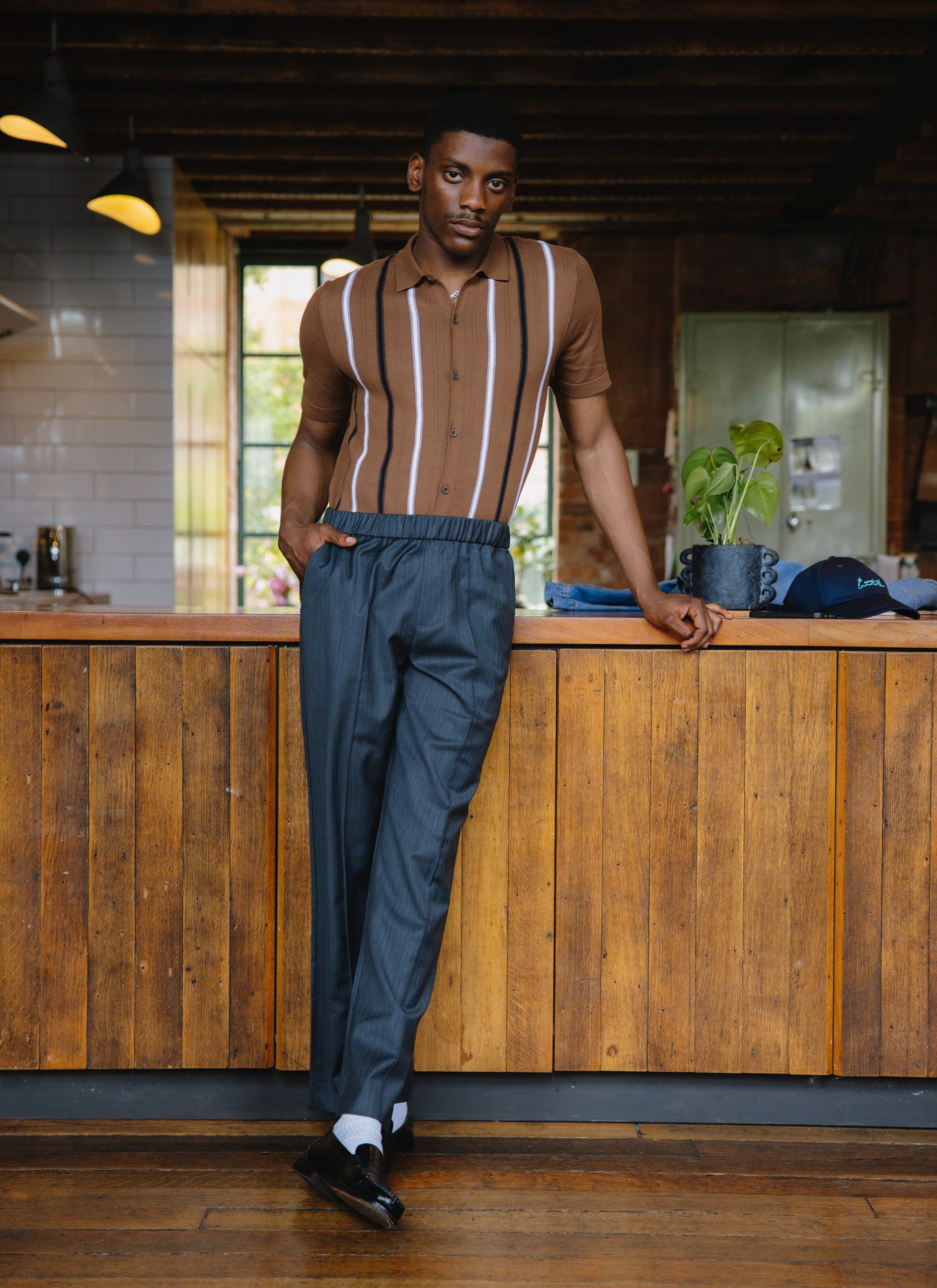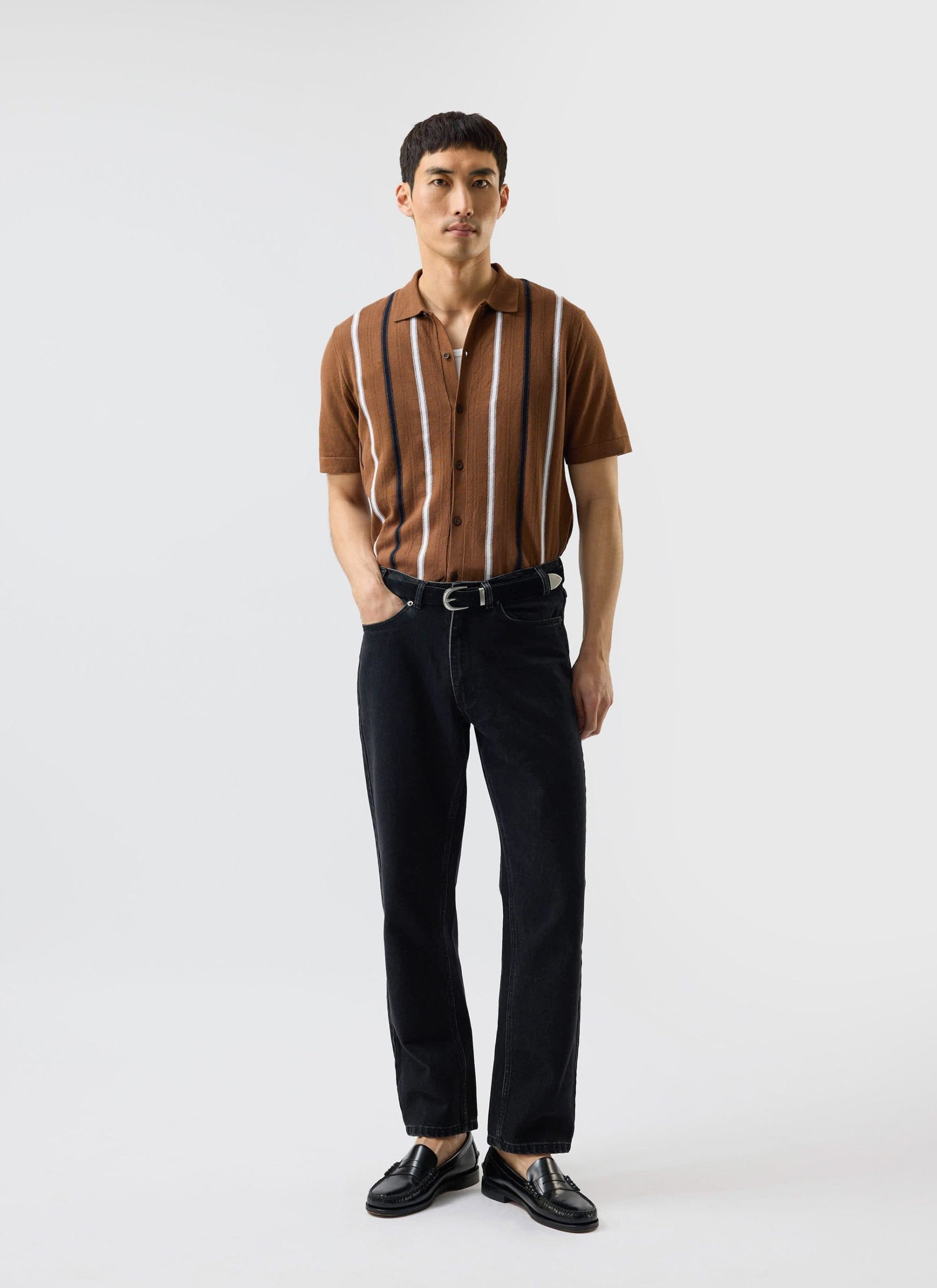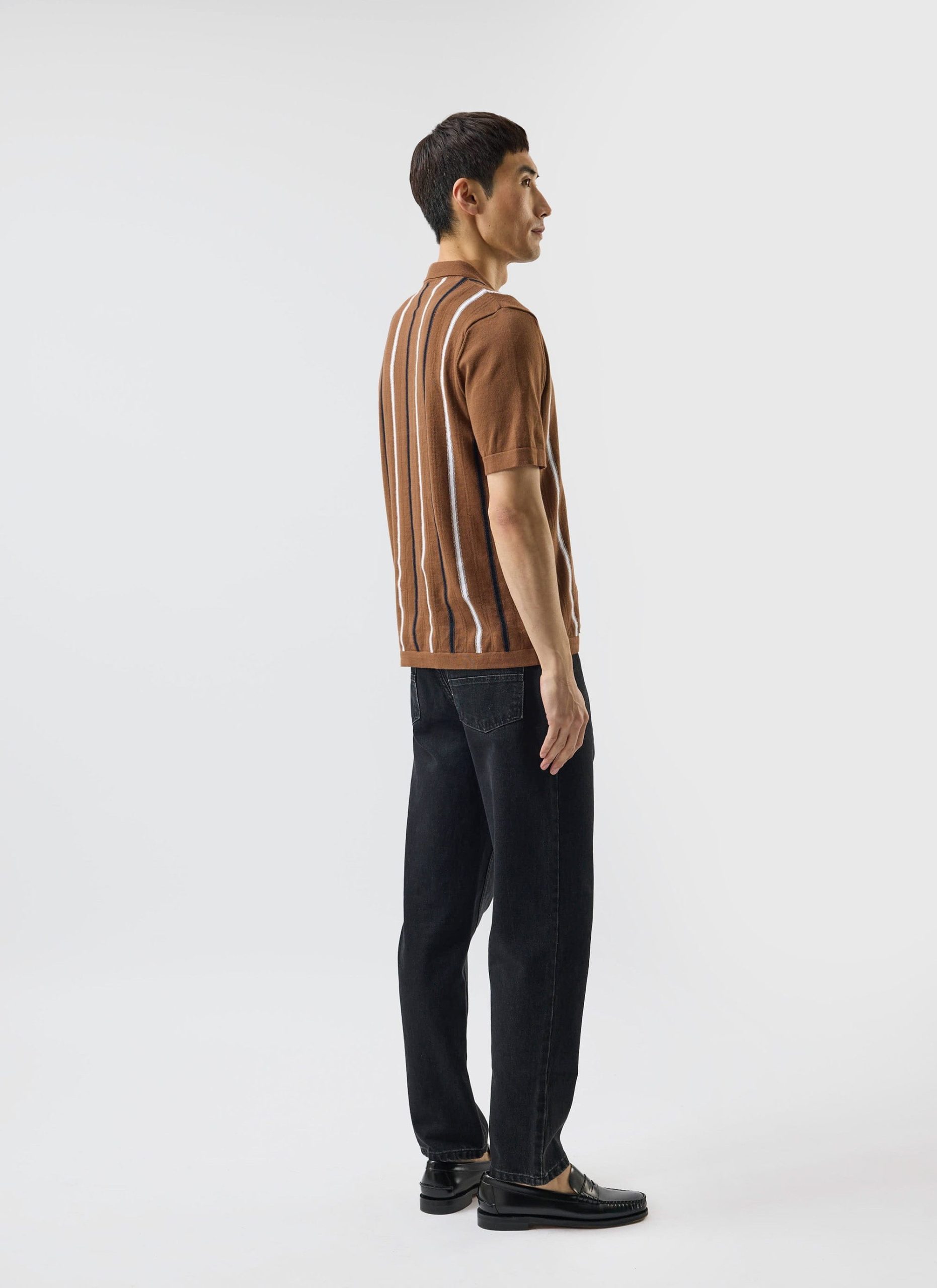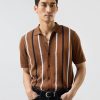 Percival Men’s Knitted Cotton Stripe Short Sleeve Shirt | Rust