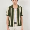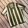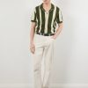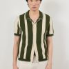 Part of the Percival Spring Summer 2025 collection, striped knit cuban collared shirt. Quality cotton knit, vintage but classic, a never out of style style, however a new Percival knit shirt collar style for 2025. Contrast stripe knit with blanket stitch detail at collar edge and placket. Summer 2025 Percival, full flavour, full Perci pomodoro, perelló, kalamata, amatriciana all fresh, all in limited quantities.