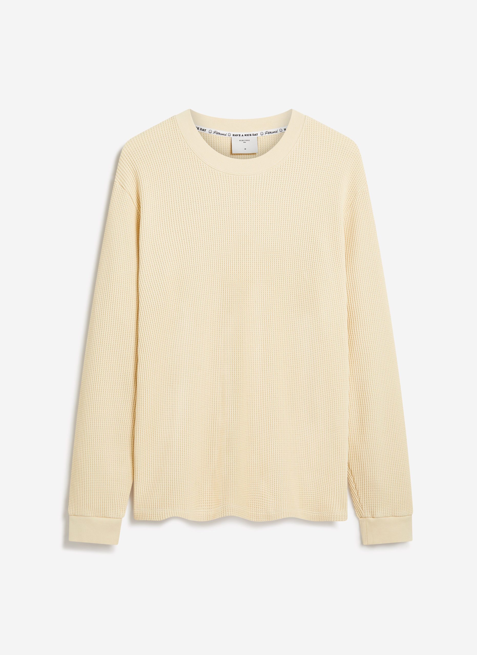 - Features: Men’s long sleeve t shirt made from 100% organic cotton in a premium waffle fabric. Designed for comfort and style, this cream t shirt offers a relaxed look that’s ideal for casual outfits. A versatile wardrobe staple, it can be worn on its own or layered, making it perfect for year round wear.