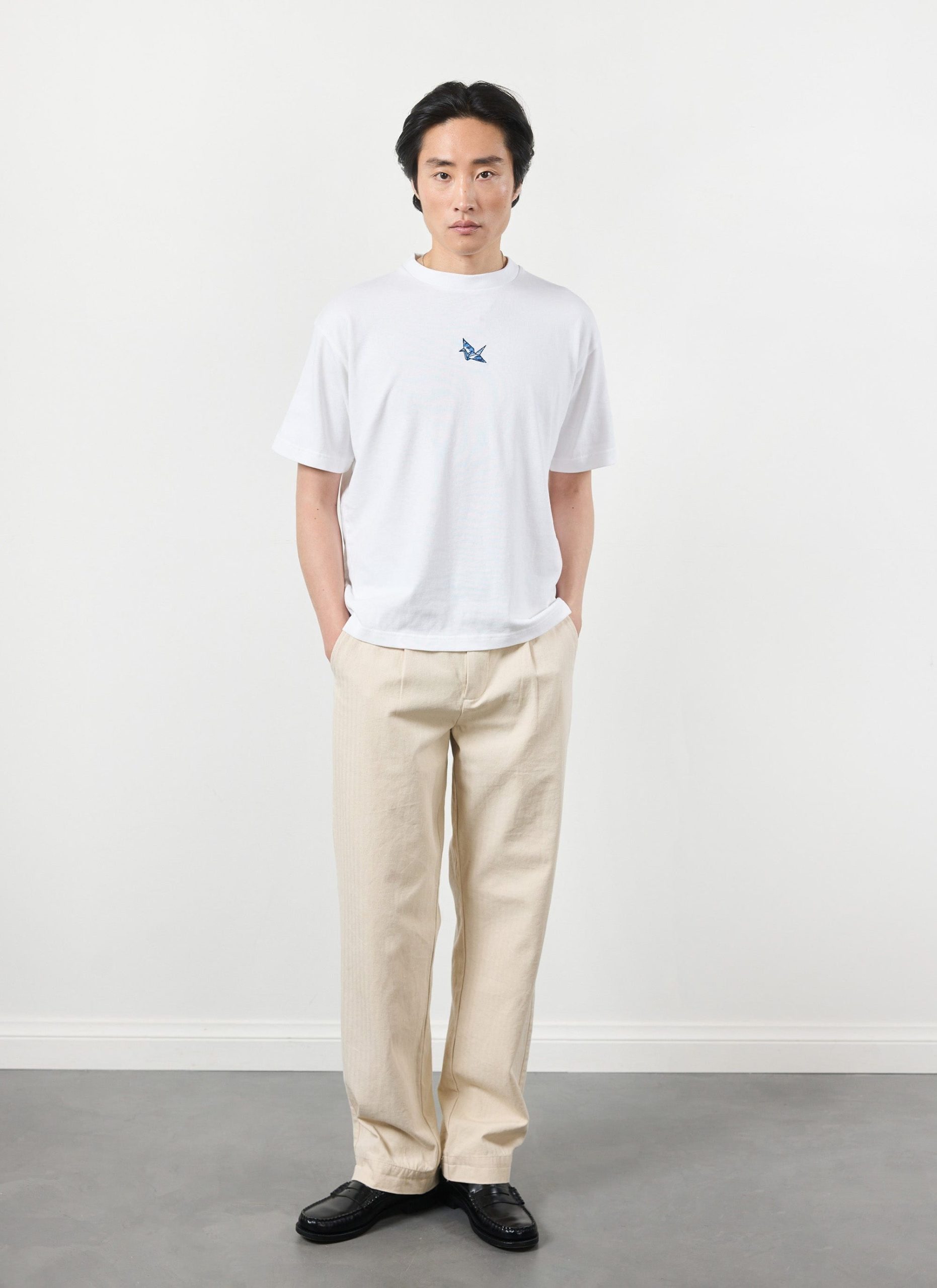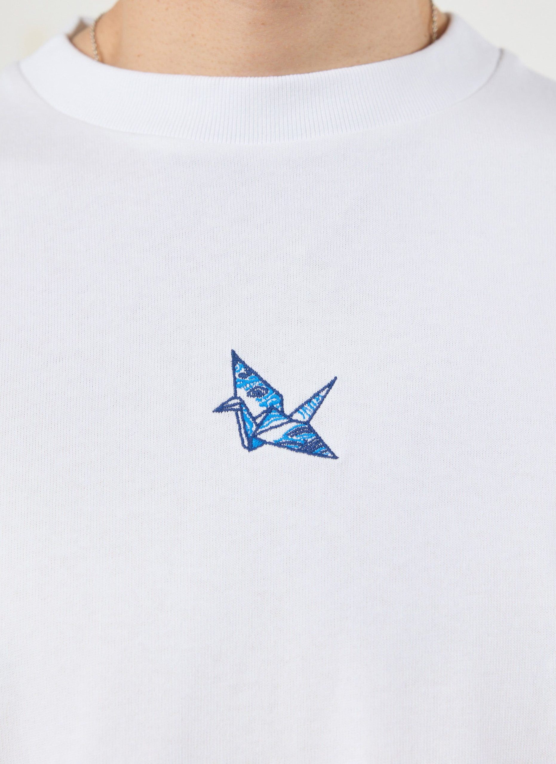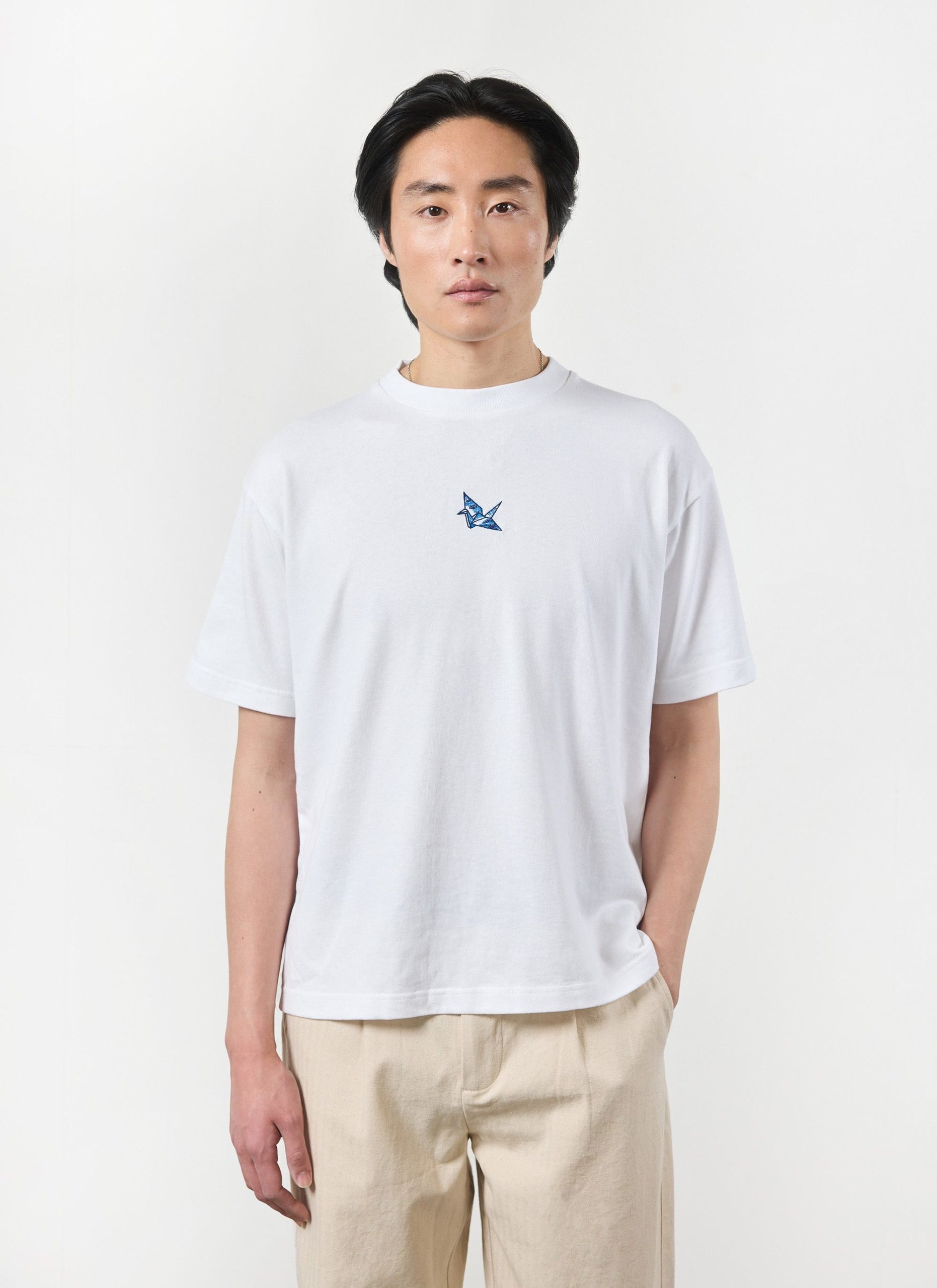 Origami, you know it, I know it, that paper paper paper. The Orizuru, or “folded crane” is one of the most popular designs, here adorning a quality Percival t-shirt. In Japanese culture the crane represents happiness and long life. Cheers to that.