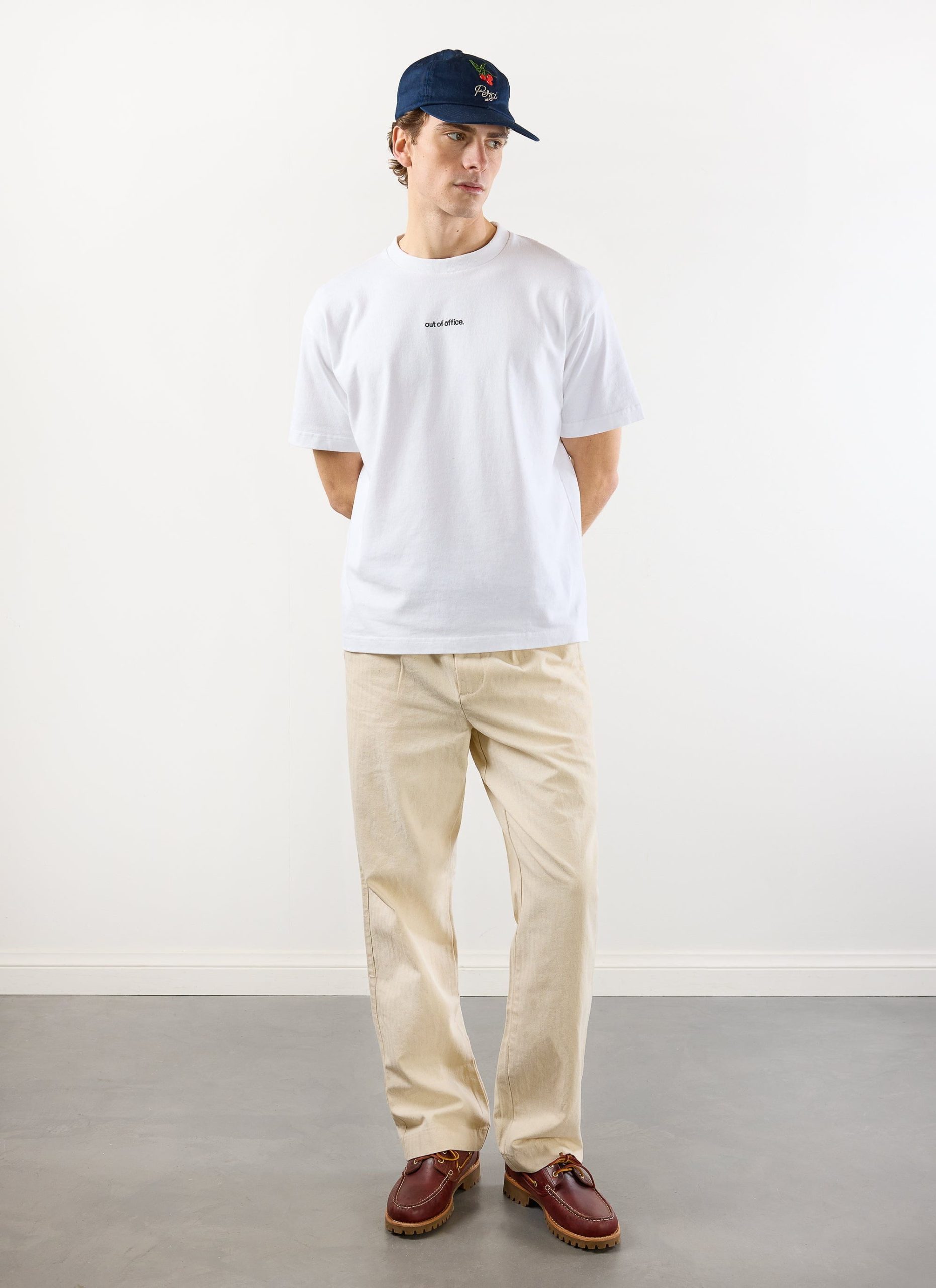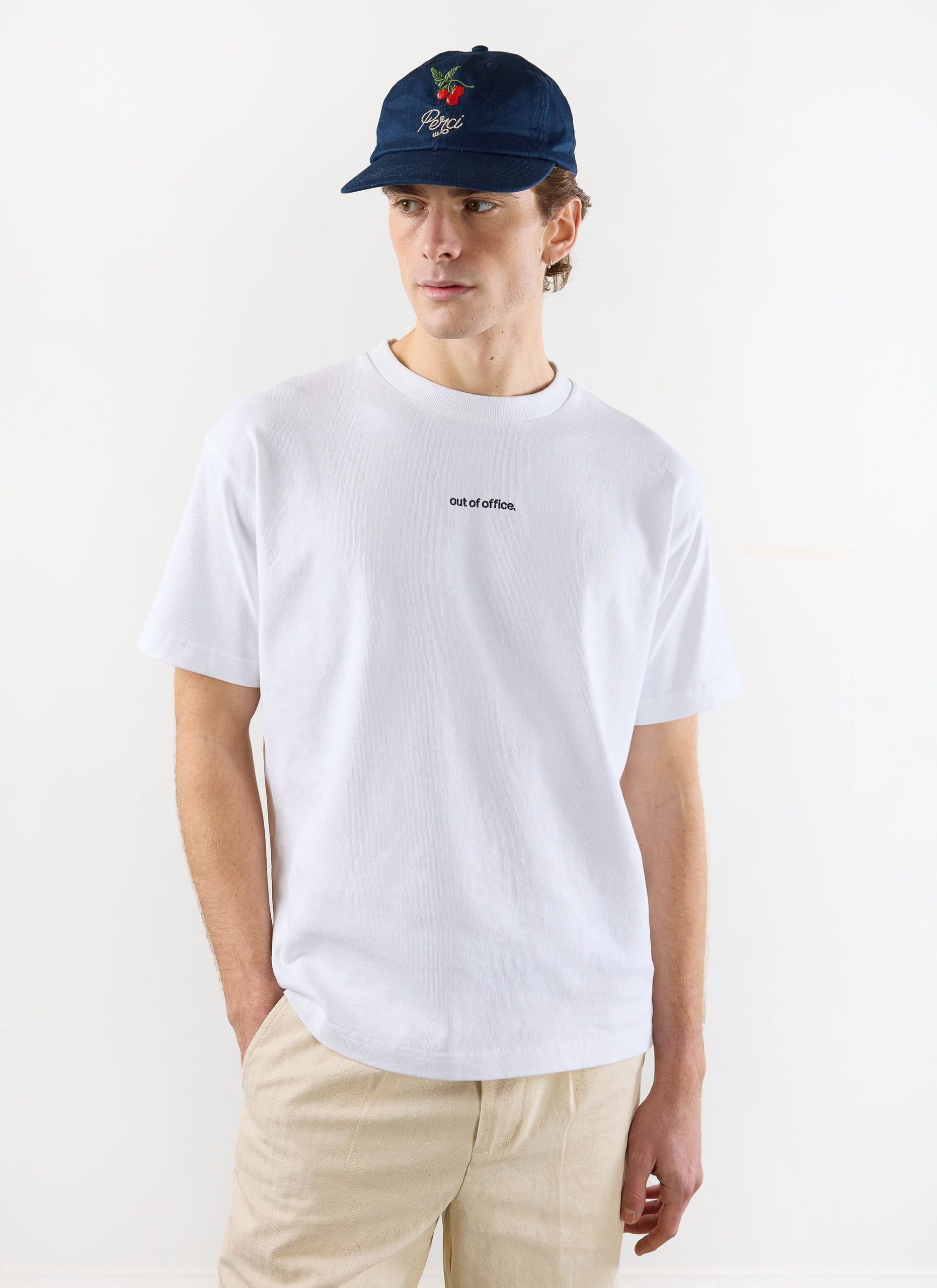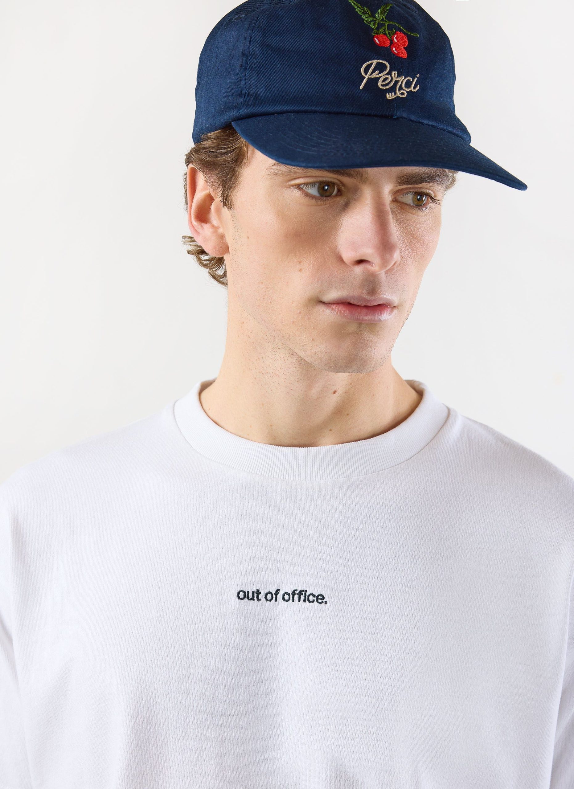A premium white t-shirt with Out of Office embroidered—because auto-replies shouldn’t be limited to emails.