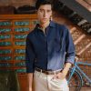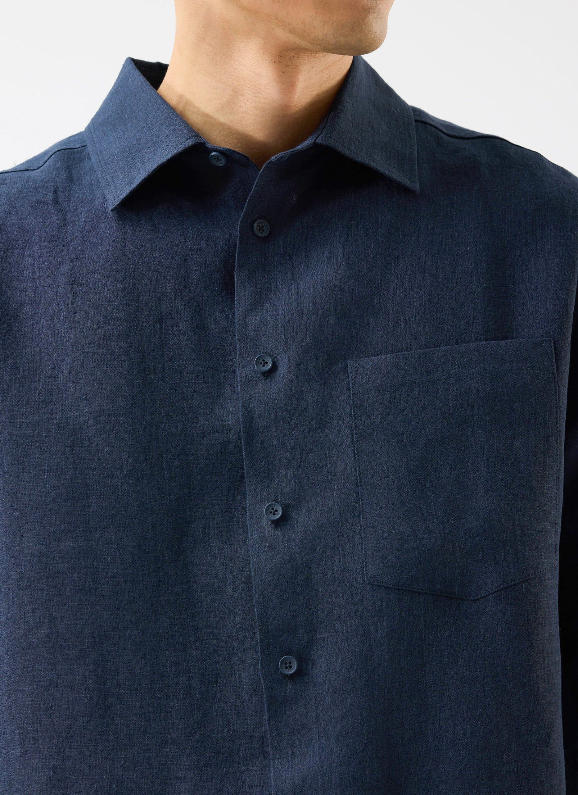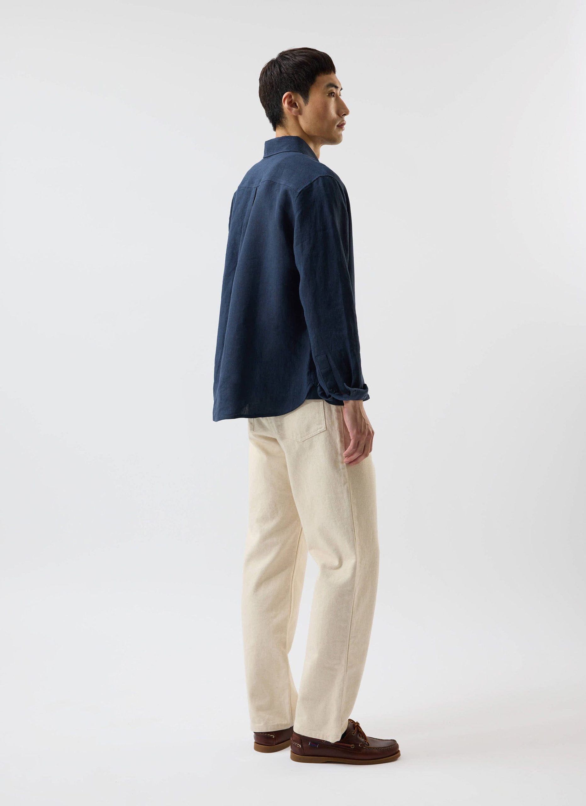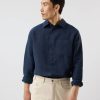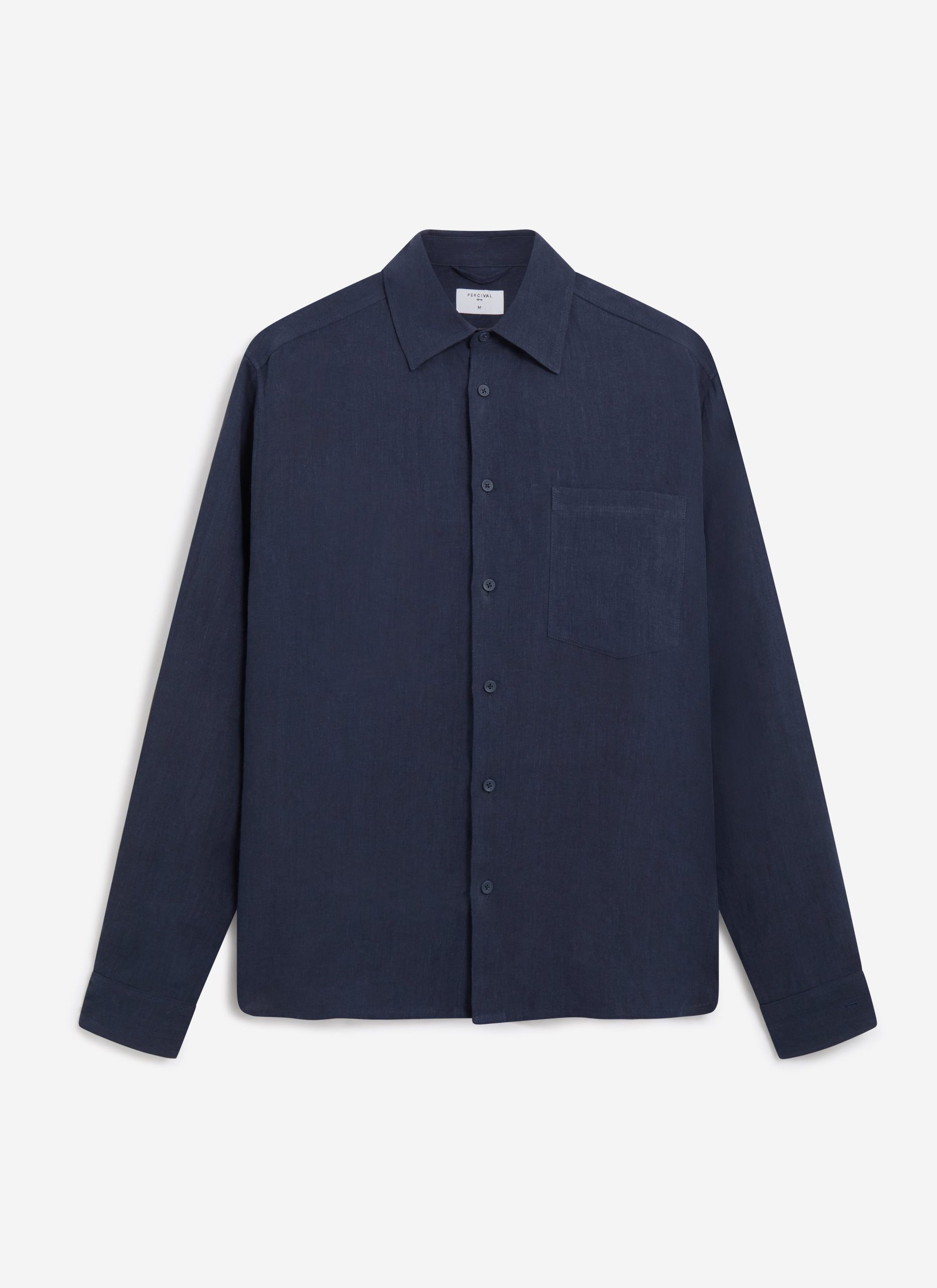 - Features: Men’s Long Sleeve Shirt in Navy. Featuring a famous linen feel, chest pocket and traditional point collar for a sophisticated look. Made from 100% linen for a breathable and light feel, this shirt is perfect for all a smart casual outfit or can be used for layering.