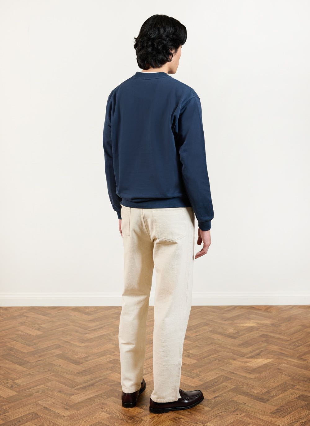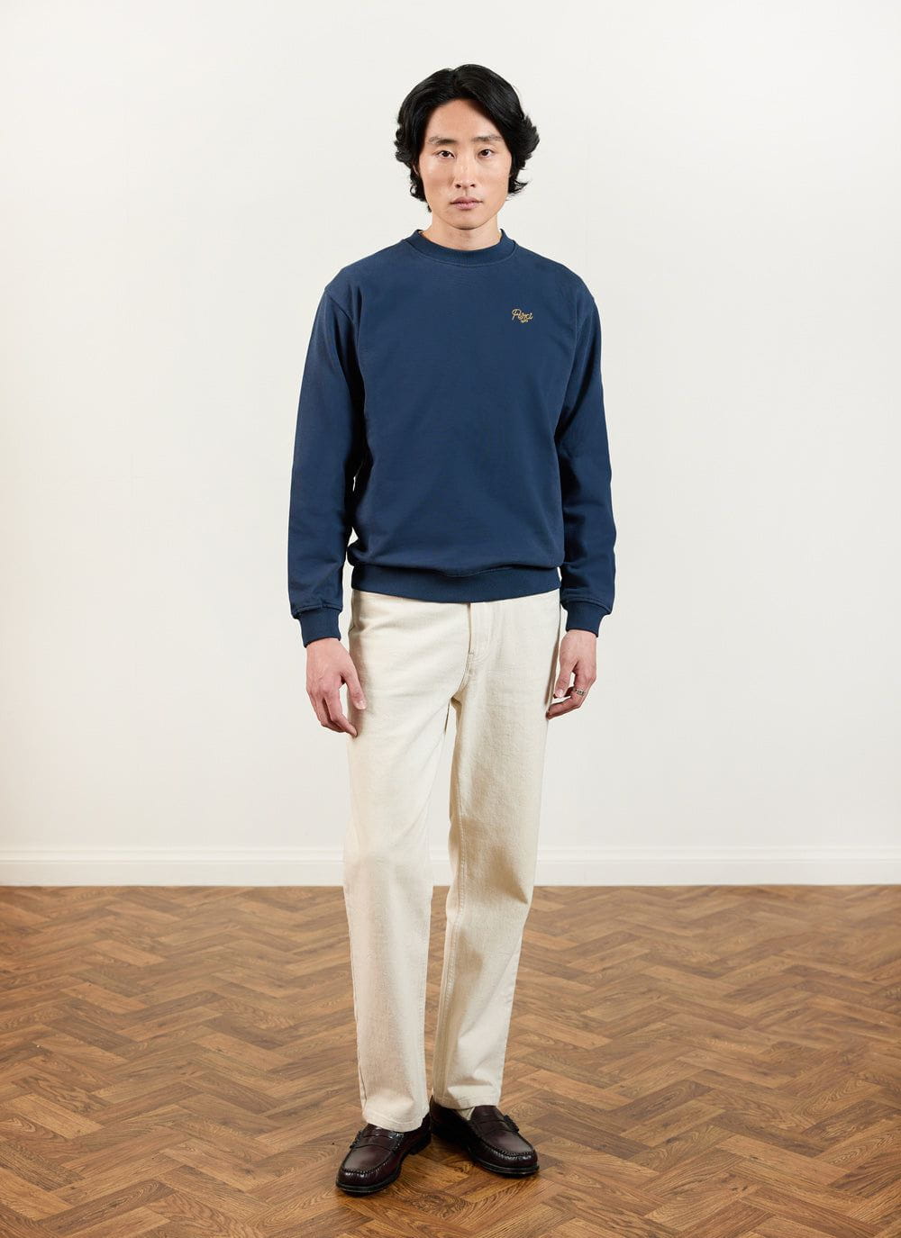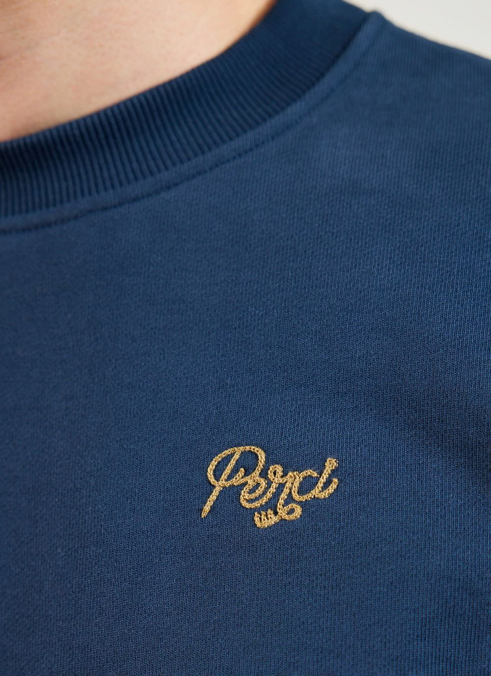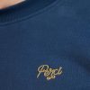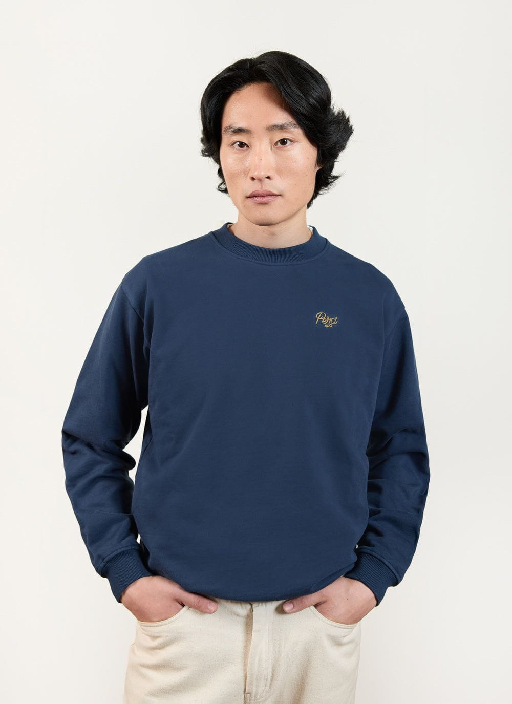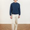 - Features: Men’s heavyweight sweatshirt crafted from 100% BCI organic cotton, designed for everyday wear. This navy sweatshirt features a chain stitch embroidered chest design and includes heavyweight ribbing at the hem and cuffs for durability and comfort. With its classic, slightly boxy fit, this 450gsm piece ensures a stylish and relaxed look.
