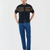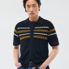 - Features: Men’s Knitted Shirt in Black. Made from 100% cotton for a textured look and feel, this knit polo is a clean yet playful summer staple. Easy to style with most colours, it pairs perfectly with Percival linen shorts or trousers. This button down summer shirt is a relaxed fit that features a subtle crochet design across the chest and intricate stitching on the collar.