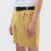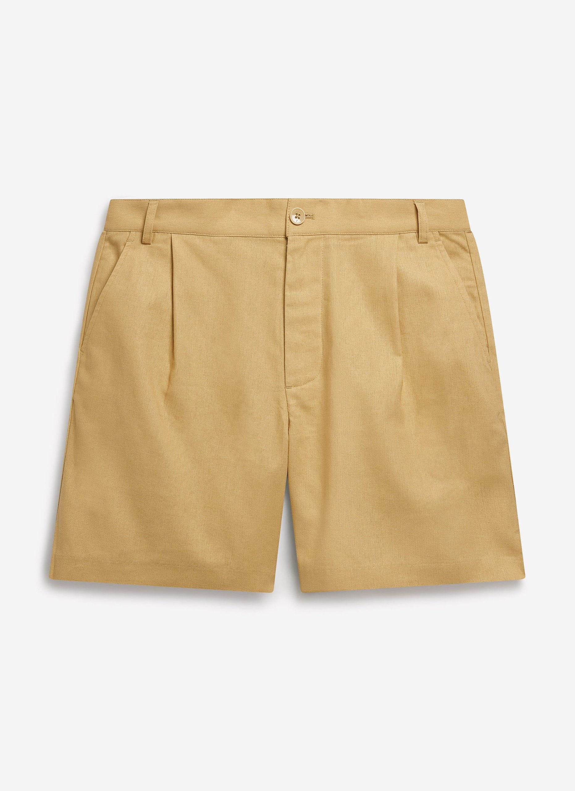 - Features: Men’s pleated shorts made from 100% linen. In a tailored fit with a fixed waistband, front pleat details, a wide width and length that finishes above the knee, and back welt pockets, these green linen shorts are ideal for spring and summer months.