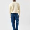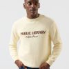 - Features: Men’s knitted crew neck jumper in ecru cream, made from an ultra-soft wool blend in a classic shape. This mid weight sweater is designed with a ribbed collar and finished with intricate ‘Public Library’ stitching for a subtle point of difference. A versatile piece for transitional seasons, this knit jumper offers warmth without bulk and layers effortlessly over shirts or under jackets. Lightweight yet cosy, it’s an ideal addition to your wardrobe for year-round styling.