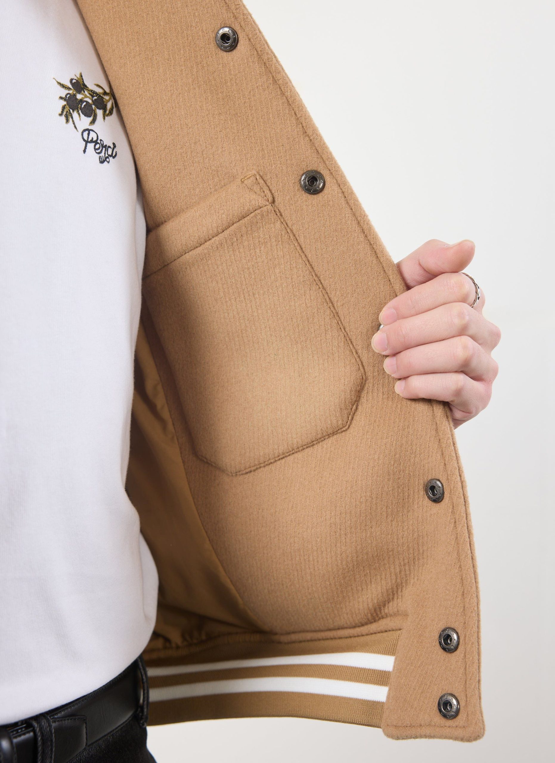 - Features: Men’s Varsity Bomber Jacket, classic varsity fit, heavy weight rib and quality wool outer fabric.