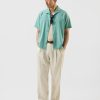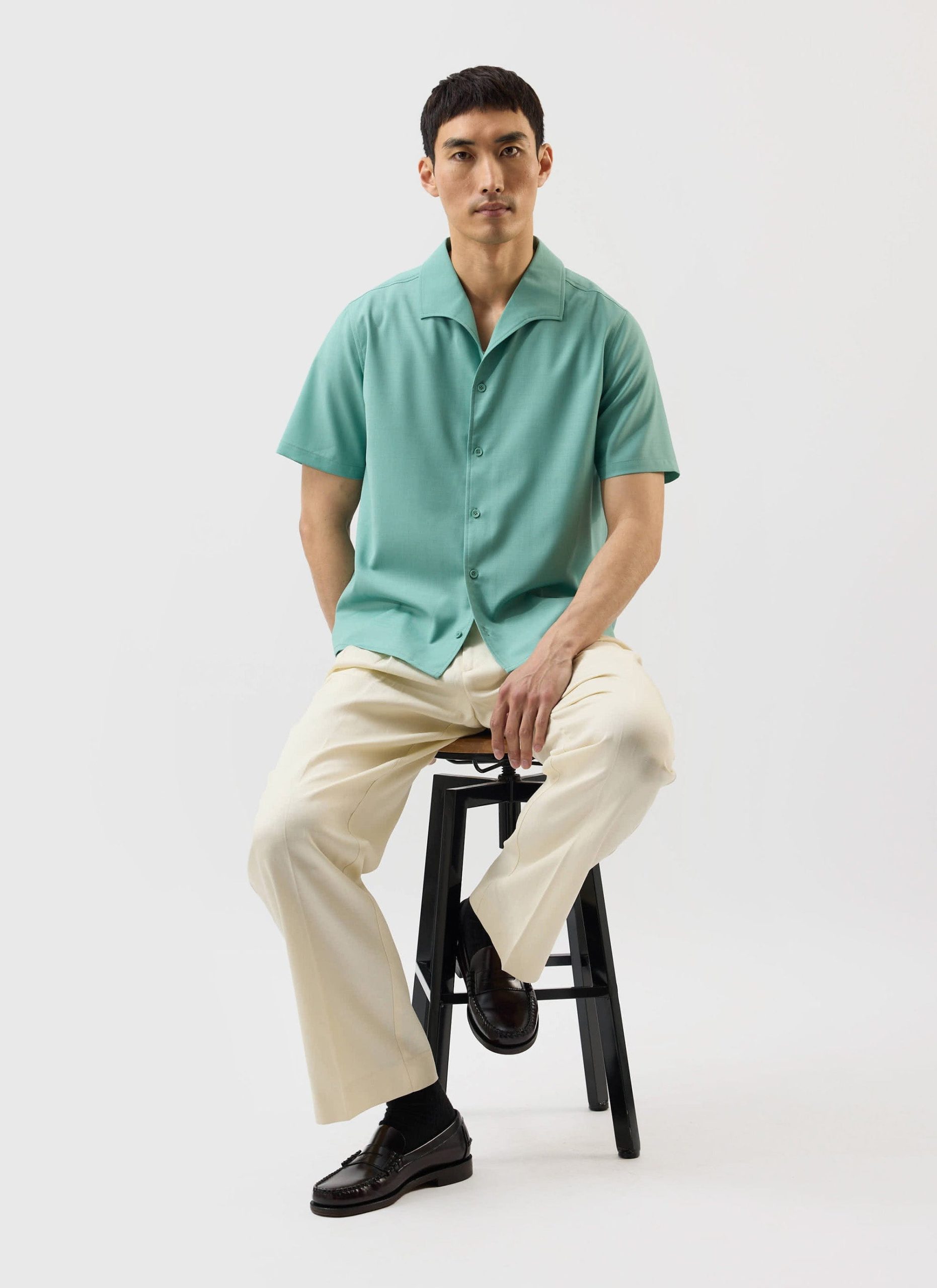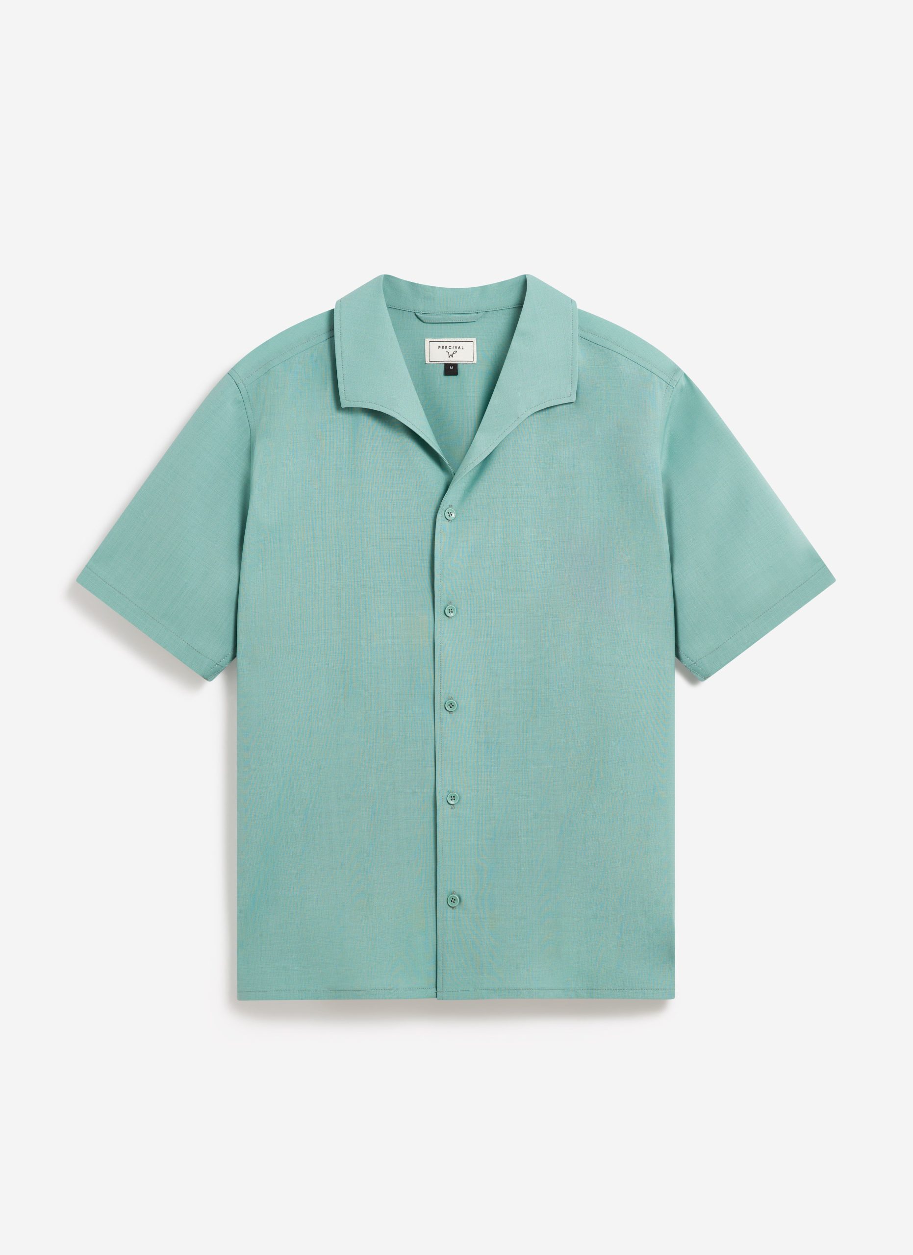 - Features: Men’s Cuban Collar Drape Shirt in Mint Green, as part of the . Inspired by classic American workwear, this relaxed fit short sleeve shirt is cut from a lightweight wool blend for an effortless drape and breathable wear. Featuring custom Percival buttons and modern take on the cuban collar, a timeless piece that will amplify your summer style.