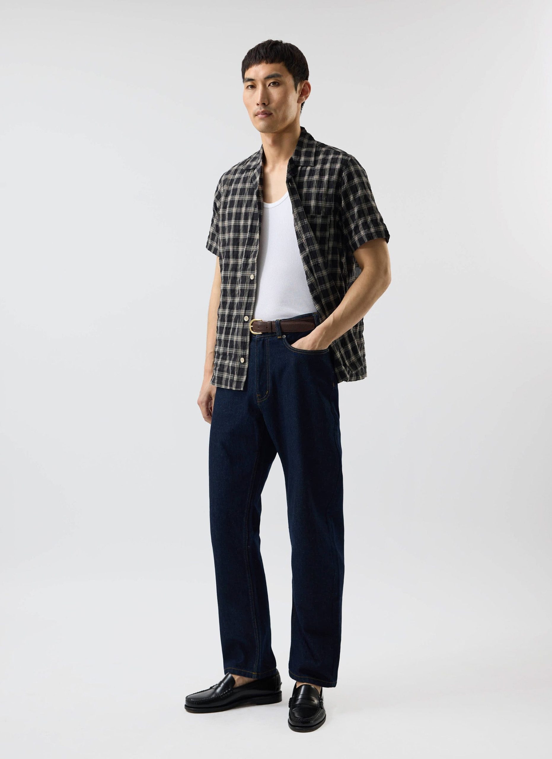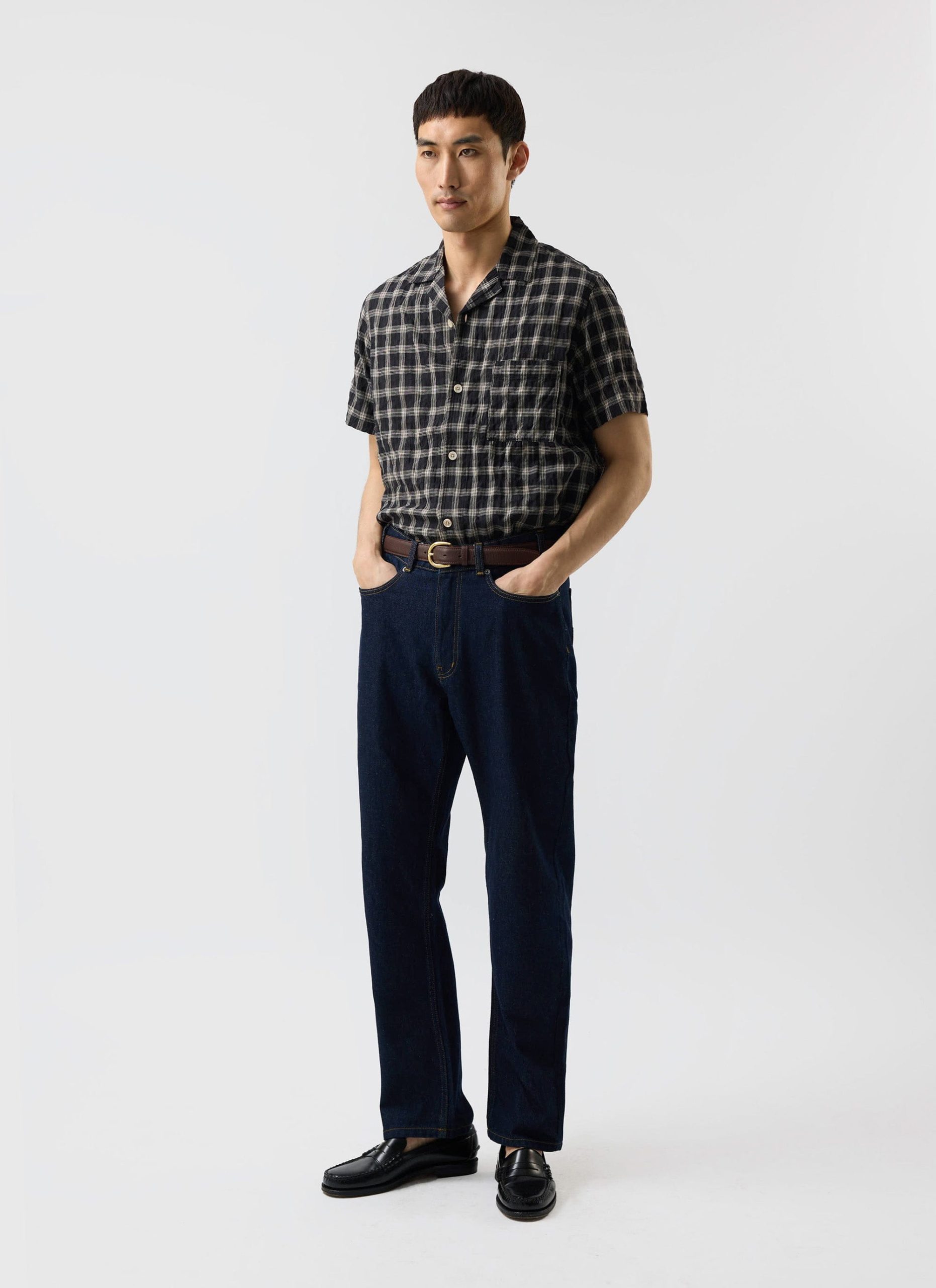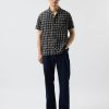 - Features: Men’s Checkered Cuban Collar Shirt in Black and White. Designed in a regular fit, this short sleeve shirt features custom Percival buttons, a chest patch pocket, and carefully constructed shoulders. Made from a premium 99% cotton blend, it’s breathable, lightweight, and ideal for warmer days. Versatile by design, it can be styled solo or layered with ease, an effortless addition to any modern wardrobe.