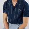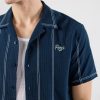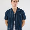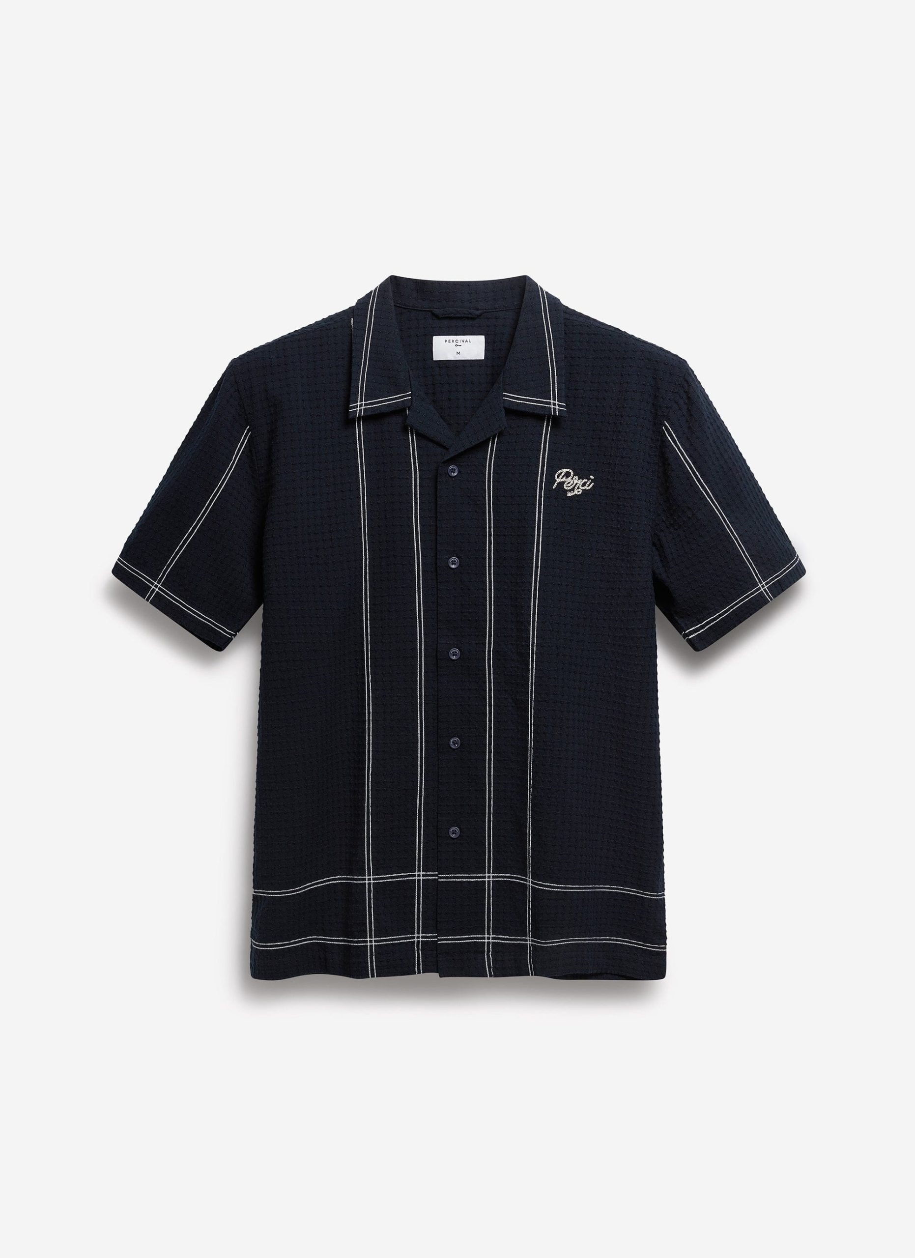 - Features: Men’s Embroidered Shirt made from 100% Cotton for a textured seersucker like finish. This navy button down shirt includes intricate embroidery details and a striped design across the shirt as well as a cuban collar. Perfect for layering and formal events, the Sicily Cuban Shirt is a must have Shirt for all men’s wardrobe.