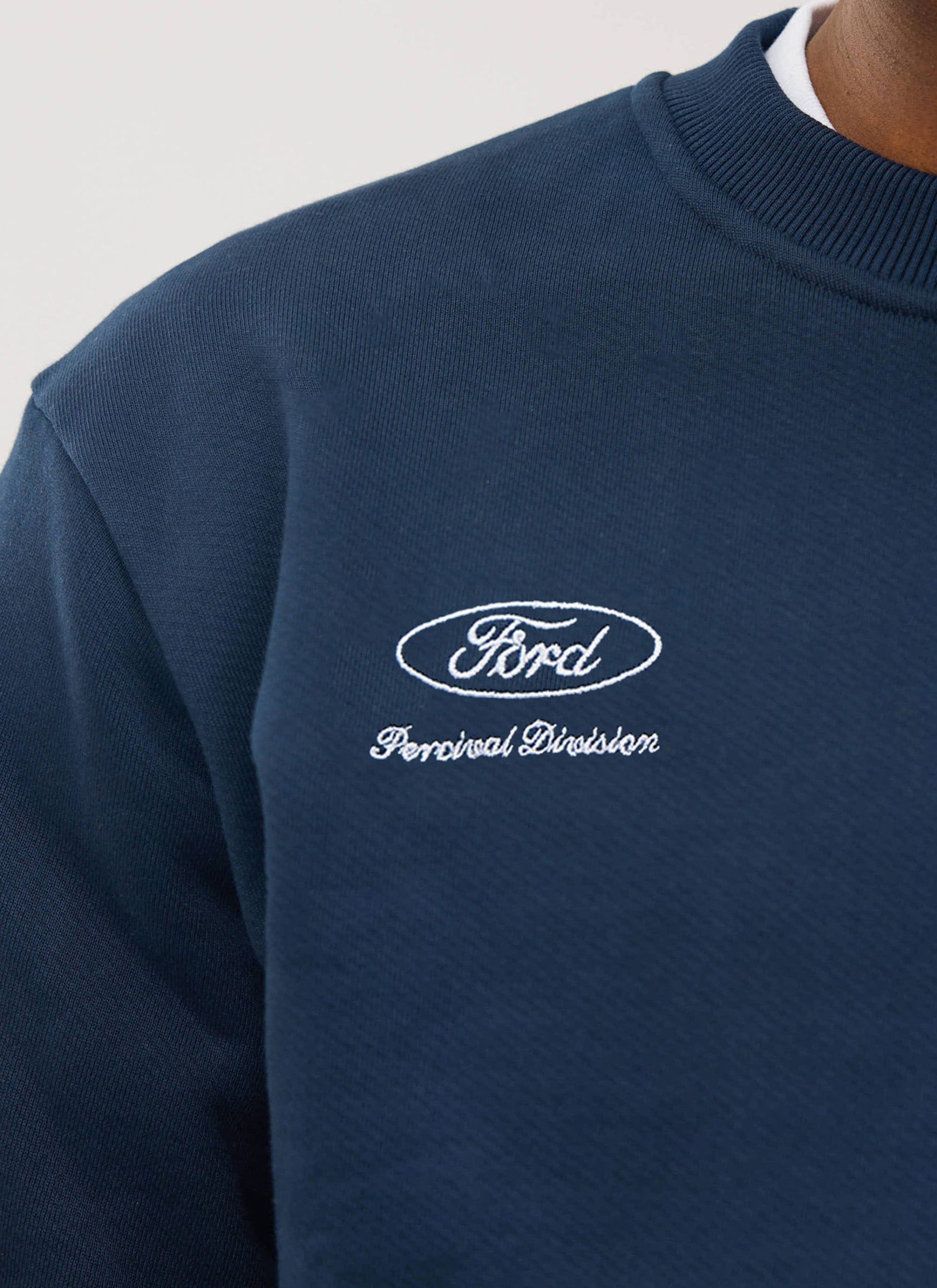- Features: Men’s navy sweatshirt made from a 100% organic cotton. Finished with custom Ford embroidery, this heavyweight sweatshirt is ideal for layering and is an easy to wear staple.