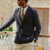 Men’s Double Breasted Linen Blazer in Navy