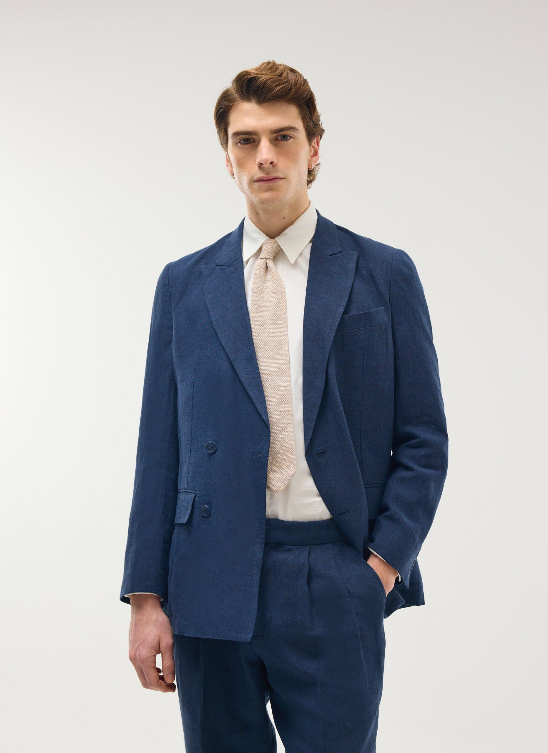 New year new suit, new fit. Percival Tailored double breasted blazer. What would this blazer be if it was a burger, the big cheese, the big Kahuna, it would be a special limited edition. Cut from our finest linen, deconstructed blazer construction, meaning it’s easy to wear, not at all a stuffy suit. Wear with matching linen trousers, there are some fit options, or wear with linen short even pair it with jeans, versatile blazer style.