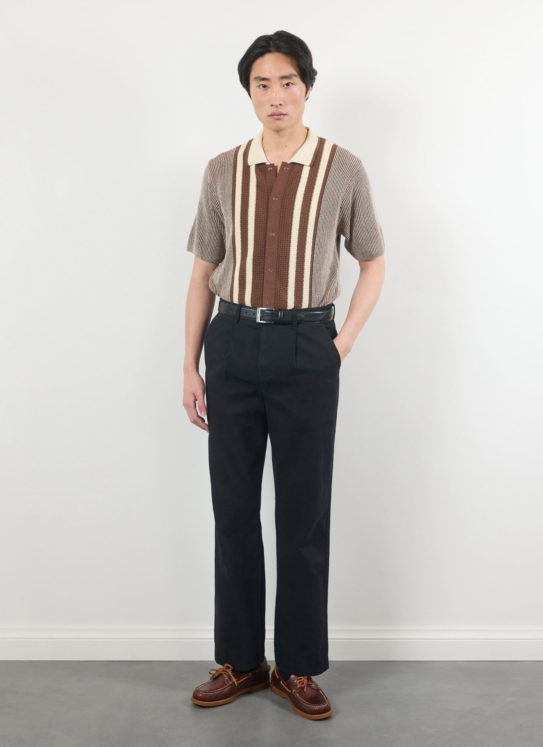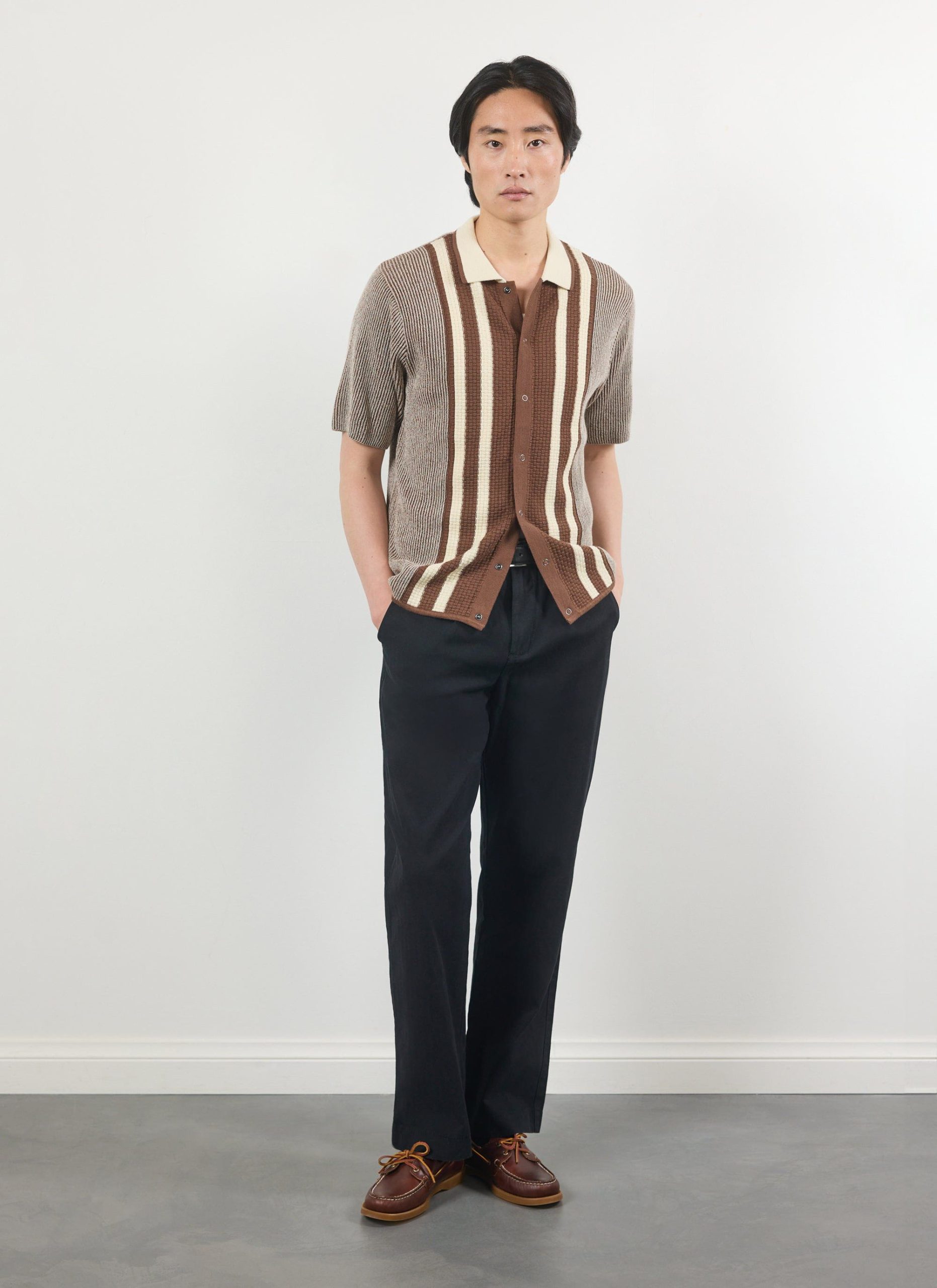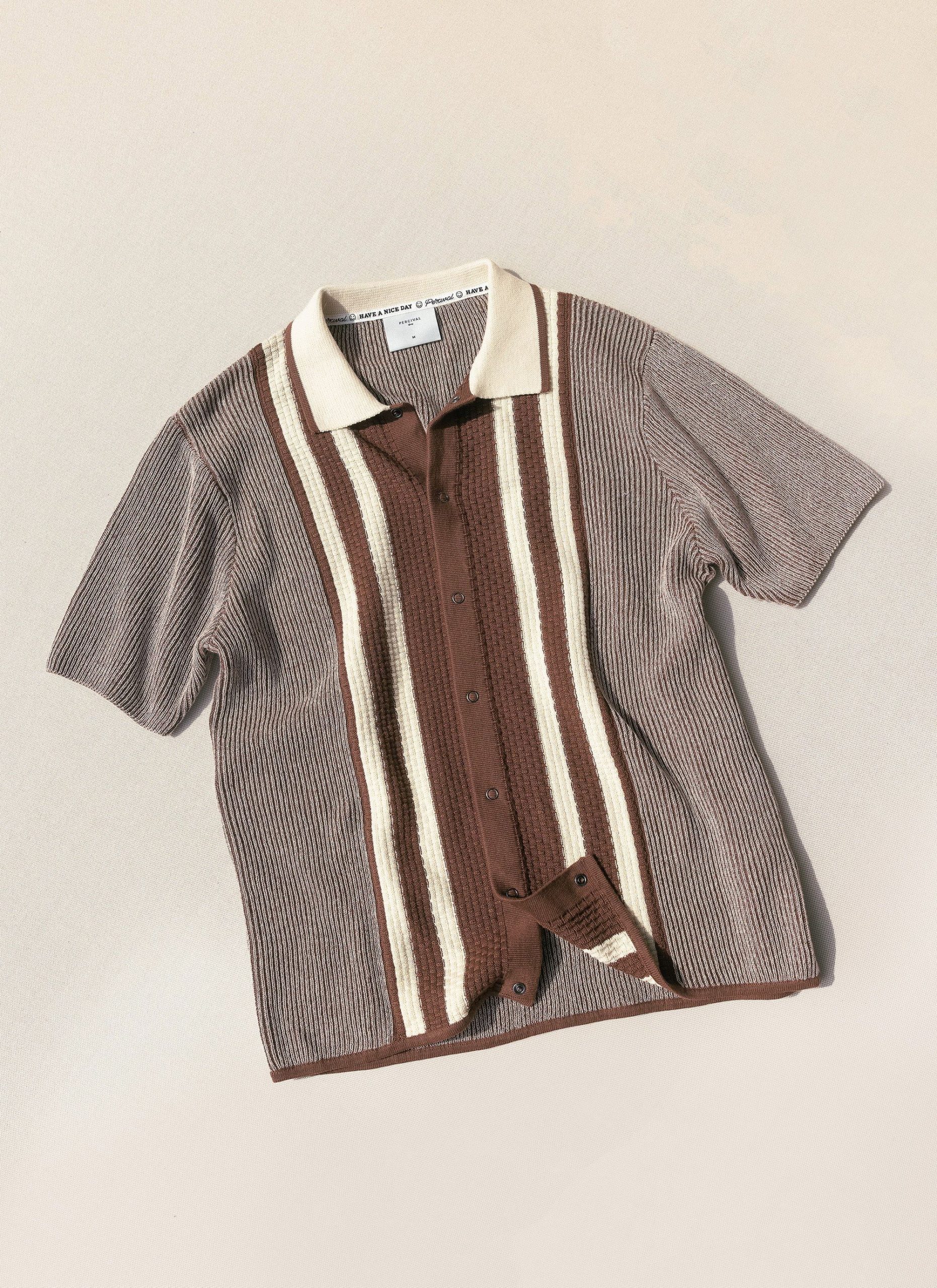 - Features: Men’s knitted polo shirt made from premium 100% cotton. This retro knit inspired piece is finished with a ribbed collar, stripe front chest and cardigan stitch body. This button down shirt comes in a standard fit making it perfect for all year round and wearing with any style of outfit.
