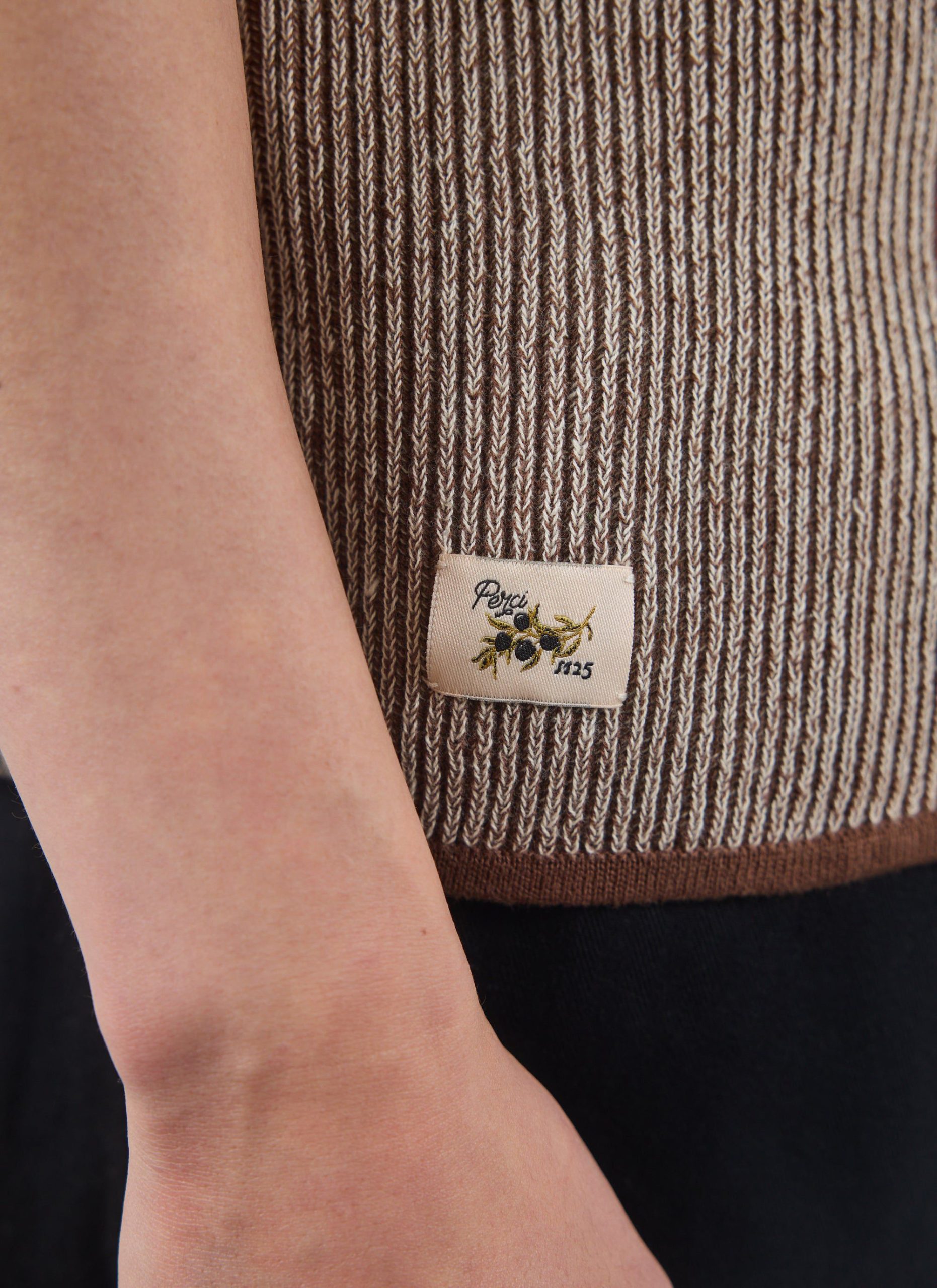 Have you seen this knit, it’s like a bulging tiramisu. Full fat, full who gives a, when you put this on, it looks good, it’s a desert, scrumptious. Knit cocoa powder, mascarpone trim, egg yoke weave, sugar, sweet. Quality cotton knit polo shirt, made in limited quantities.