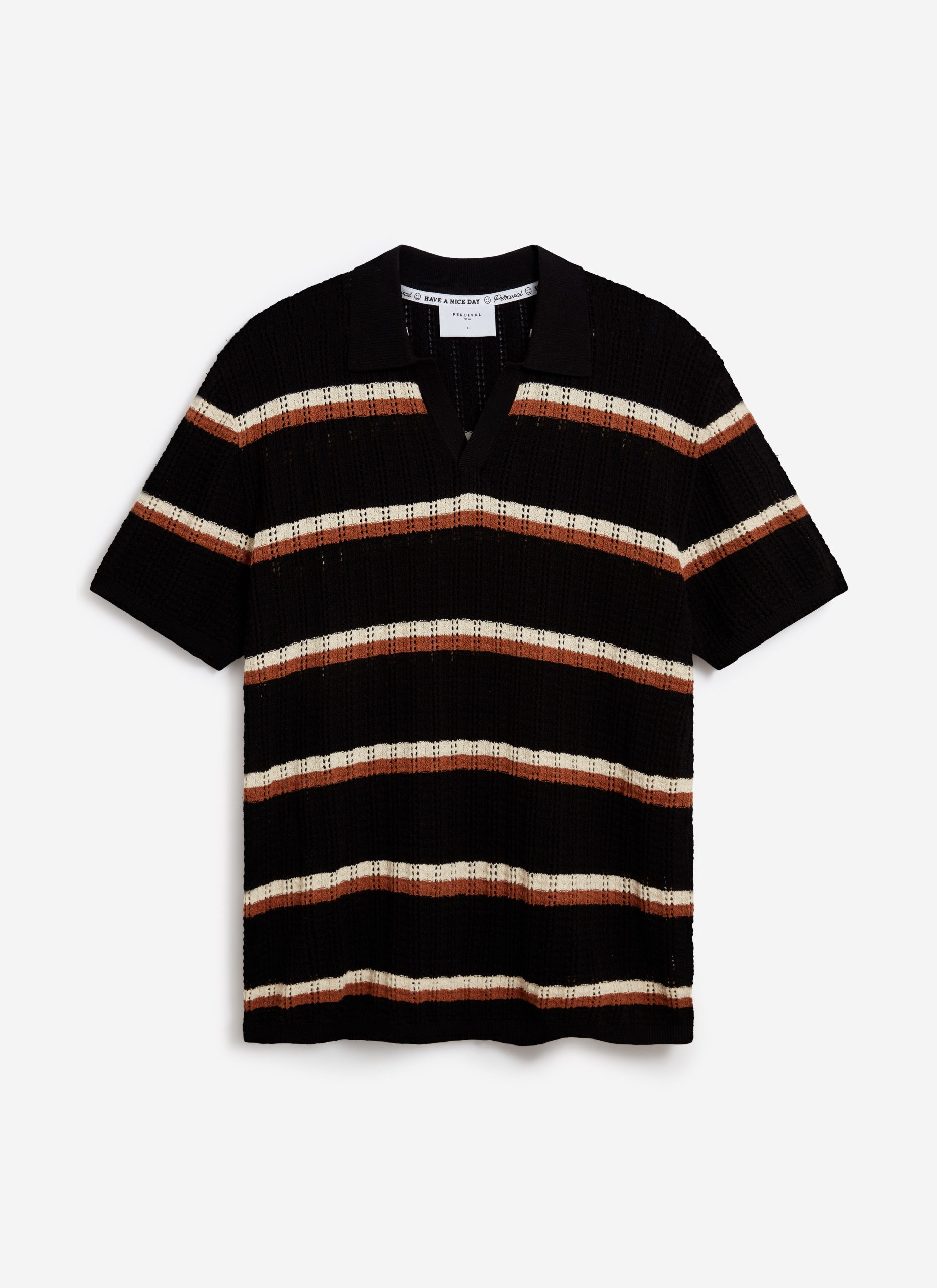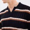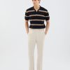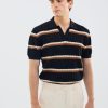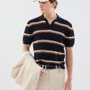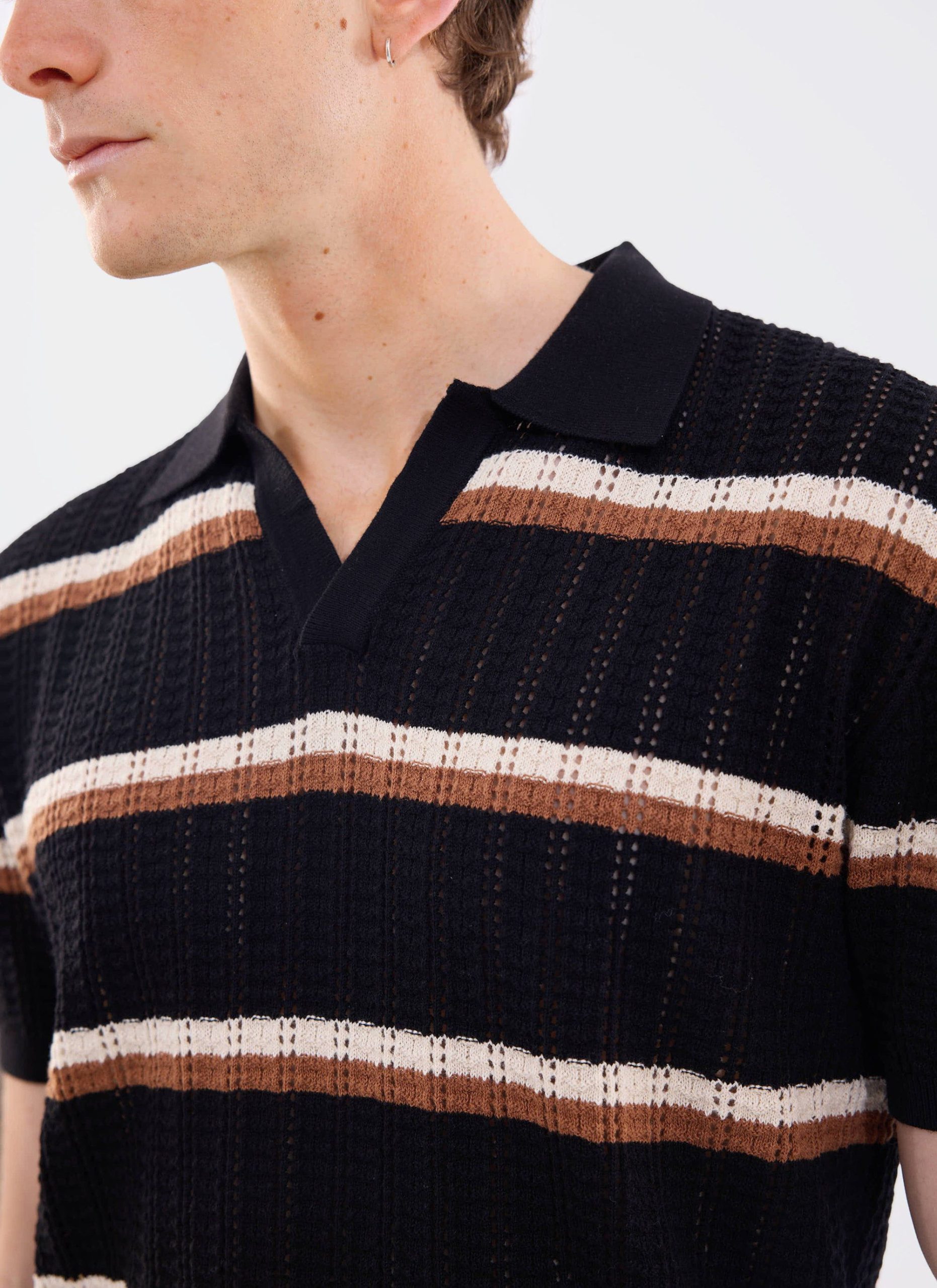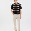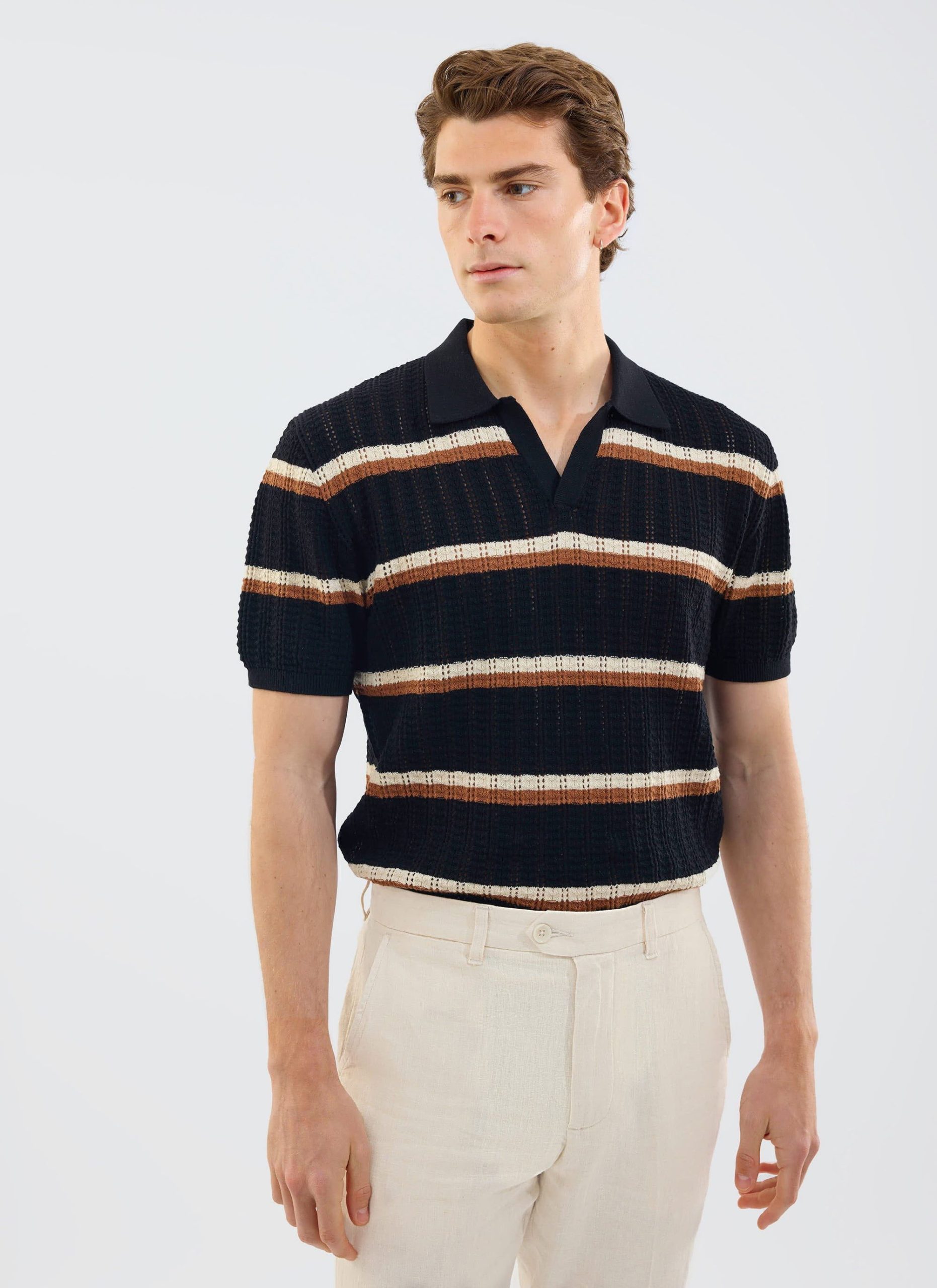- Features: Men’s knitted polo shirt with an open collar, made from 100% organic cotton. Designed for a comfortable fit, this versatile polo is perfect for any occasion and pairs effortlessly with any outfit. A finely ribbed polo shirt with vertical cream stripes, featuring a ribbed collar, open placket, and ribbed arms, this polo is a must-have for men who appreciate effortless style.